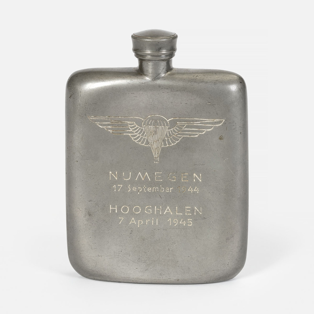 Flask, flesje van metaal met opschrift : Nijmegen 17...