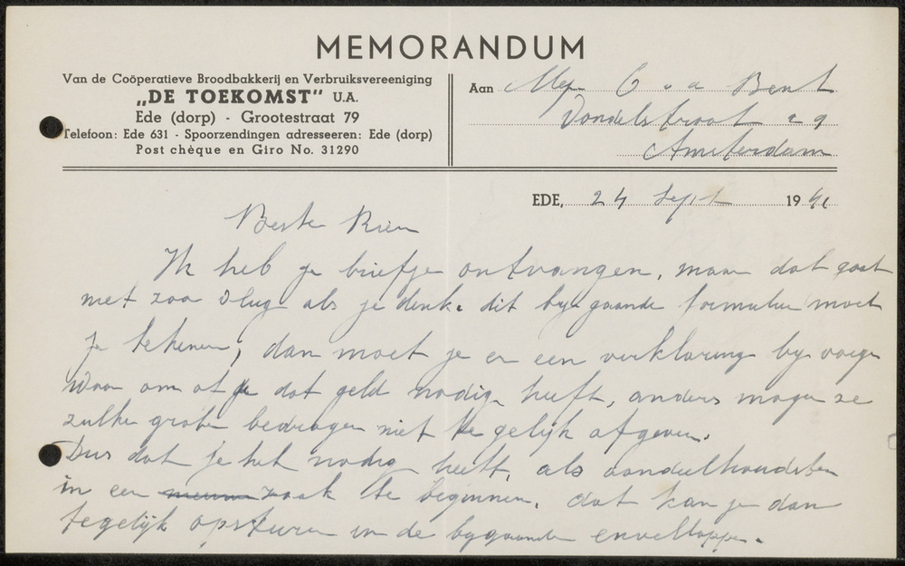 Briefje Ede 24 Sept. 1941, van Je Vader