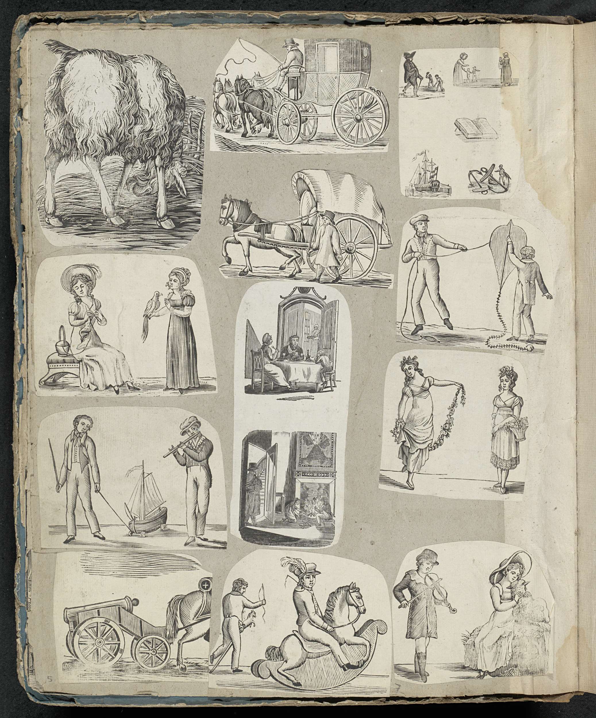 Album met uitgeknipte en ingeplakte volksprenten voo...