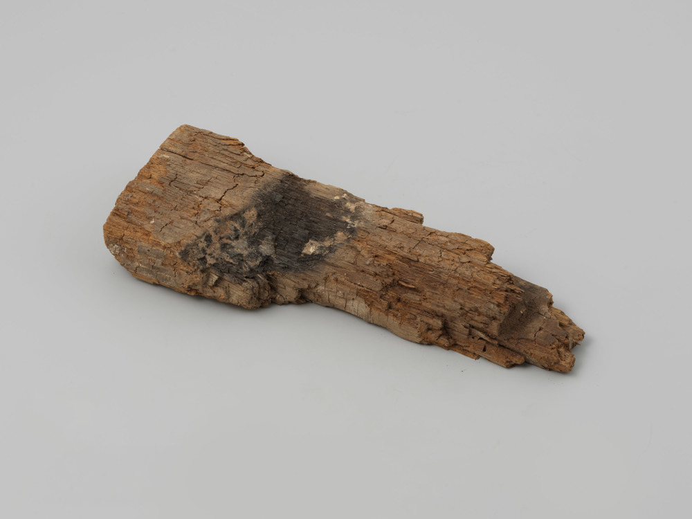 Houten stootrand met sporen van de brand van 1590