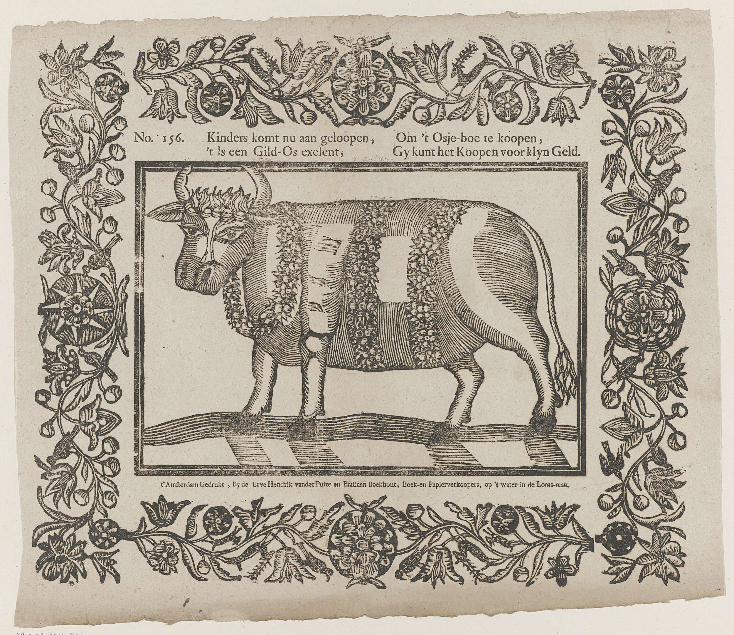 Kinders komt nu aan geloopen / Om 't osje-boe te koo...