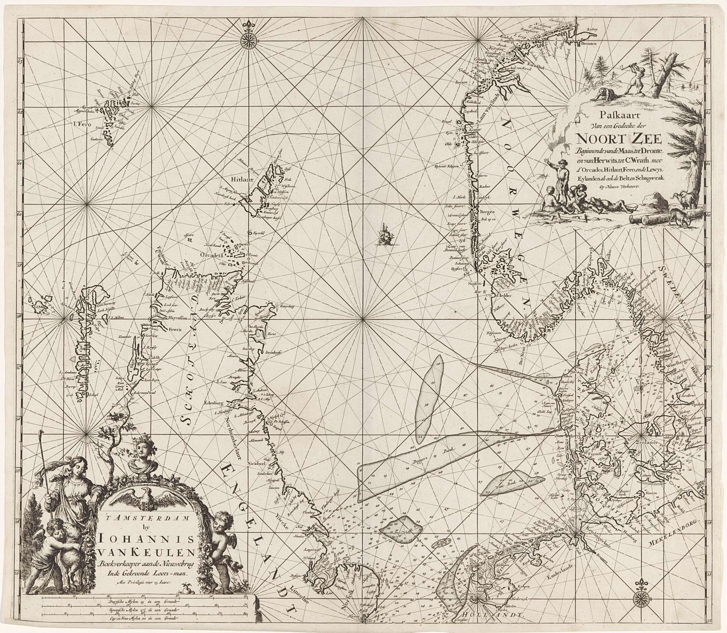 Paskaart van een groot deel van de Noordzee