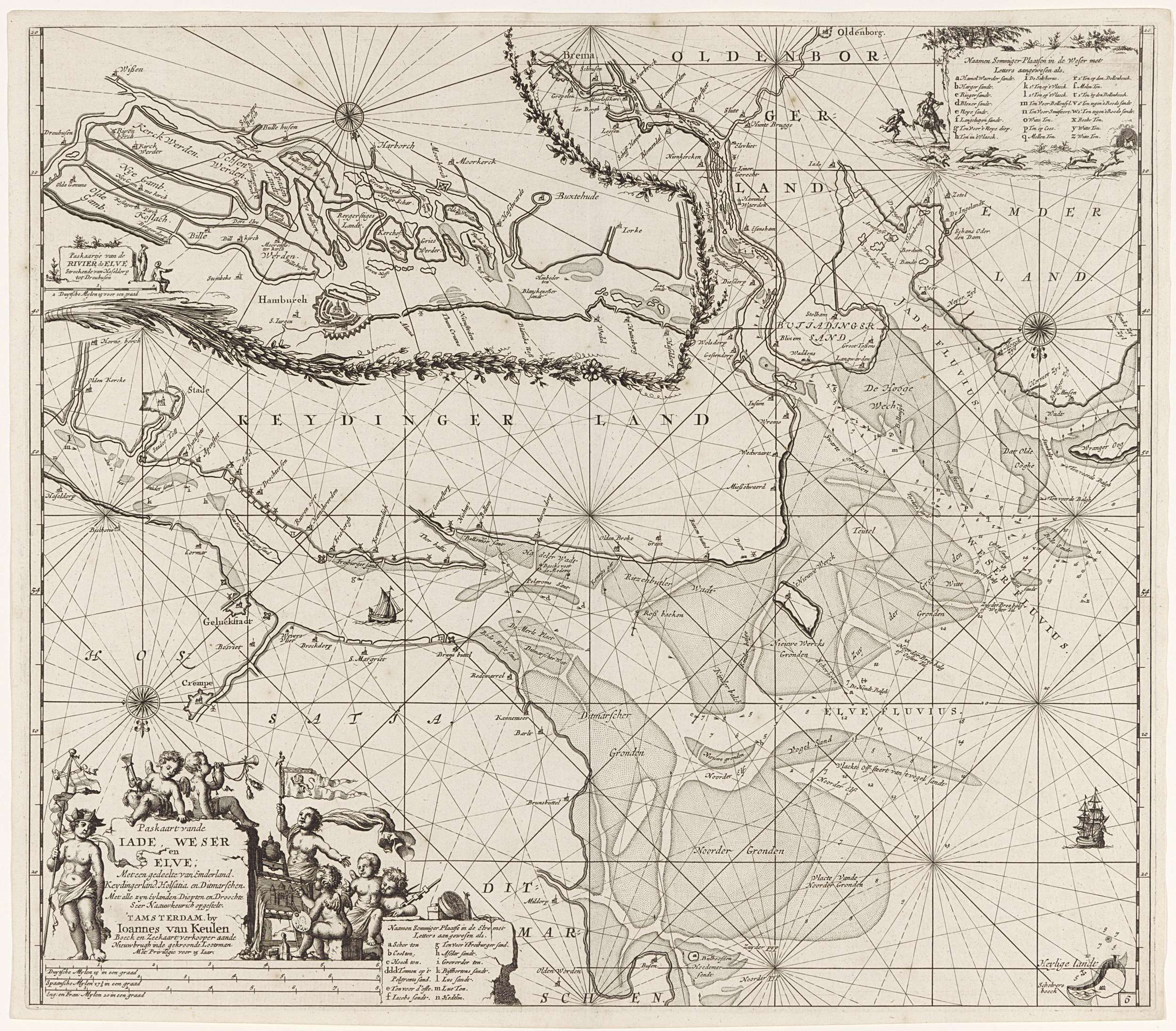 Paskaart van een deel van de Elbe, de Weser en de Ja...