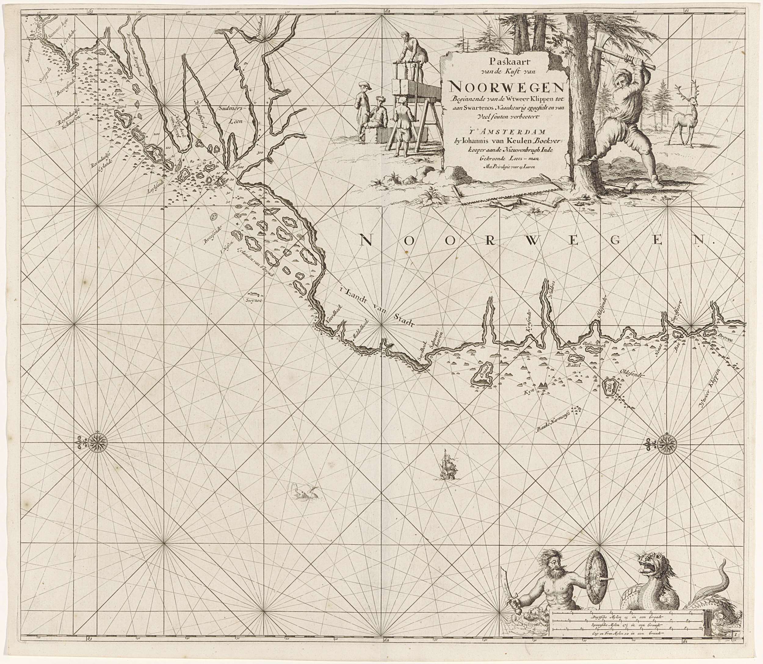 Paskaart van een gedeelte van de kust van Noorwegen