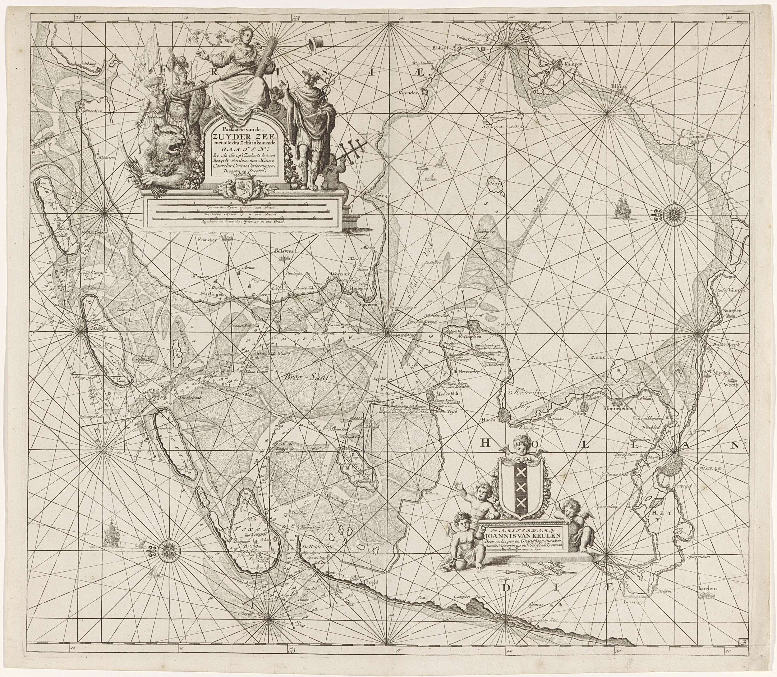 Paskaart van de Zuiderzee en de Waddenzee