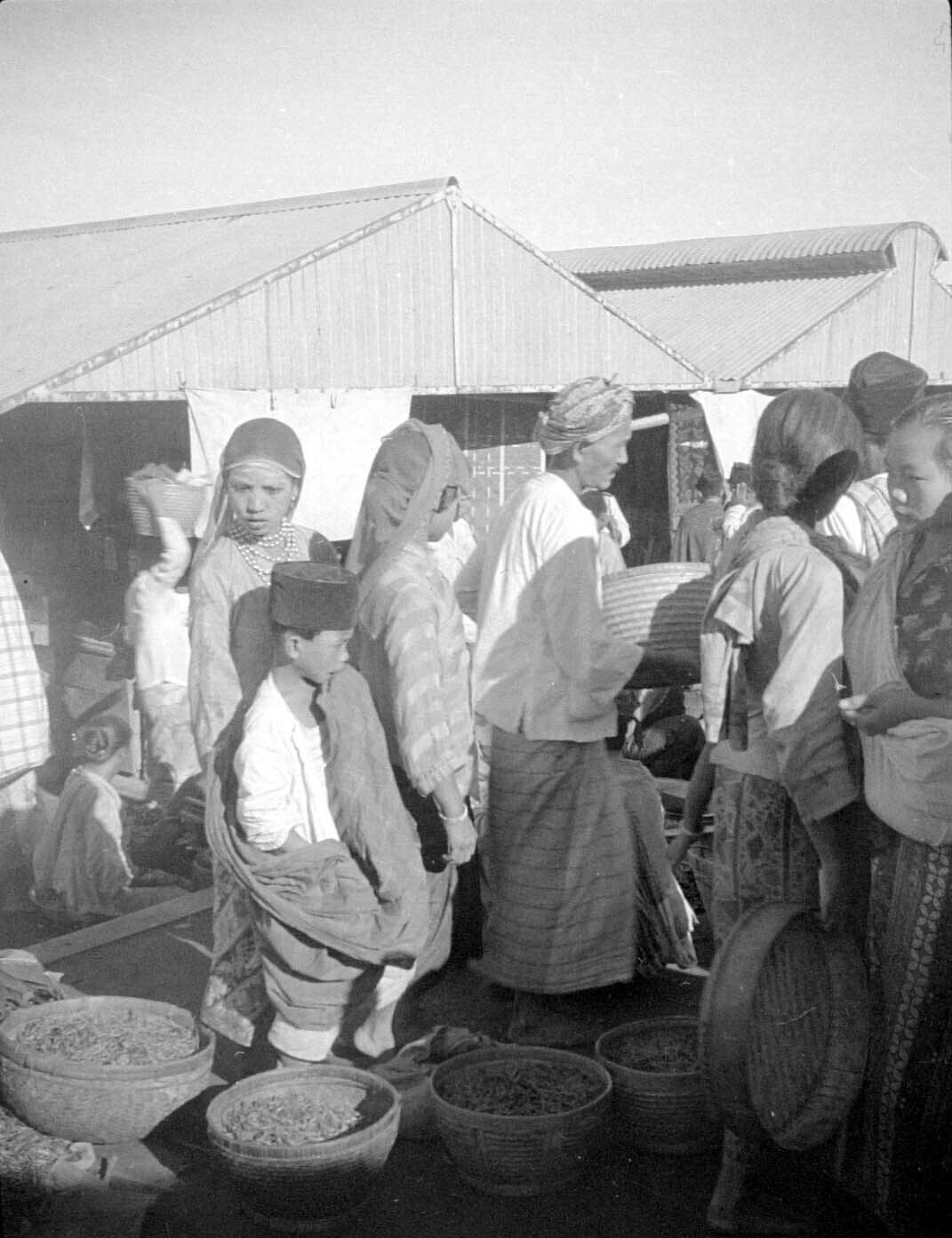 Een groep Javaanse kolonisten bij hun tijdelijke won...