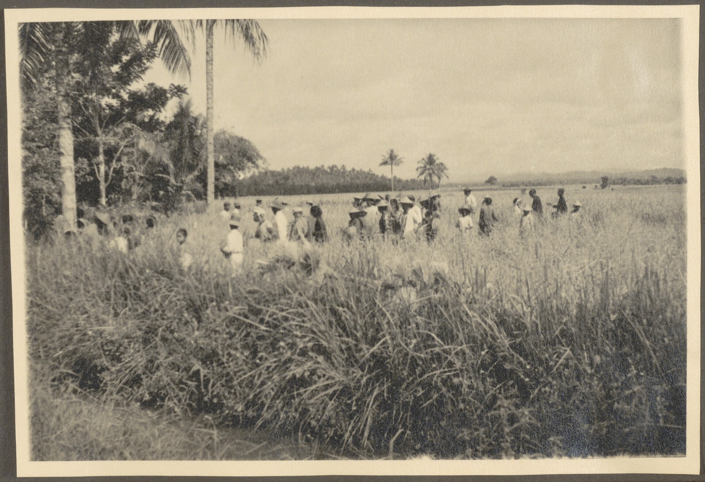 Bewoners werken op de rijstvelden