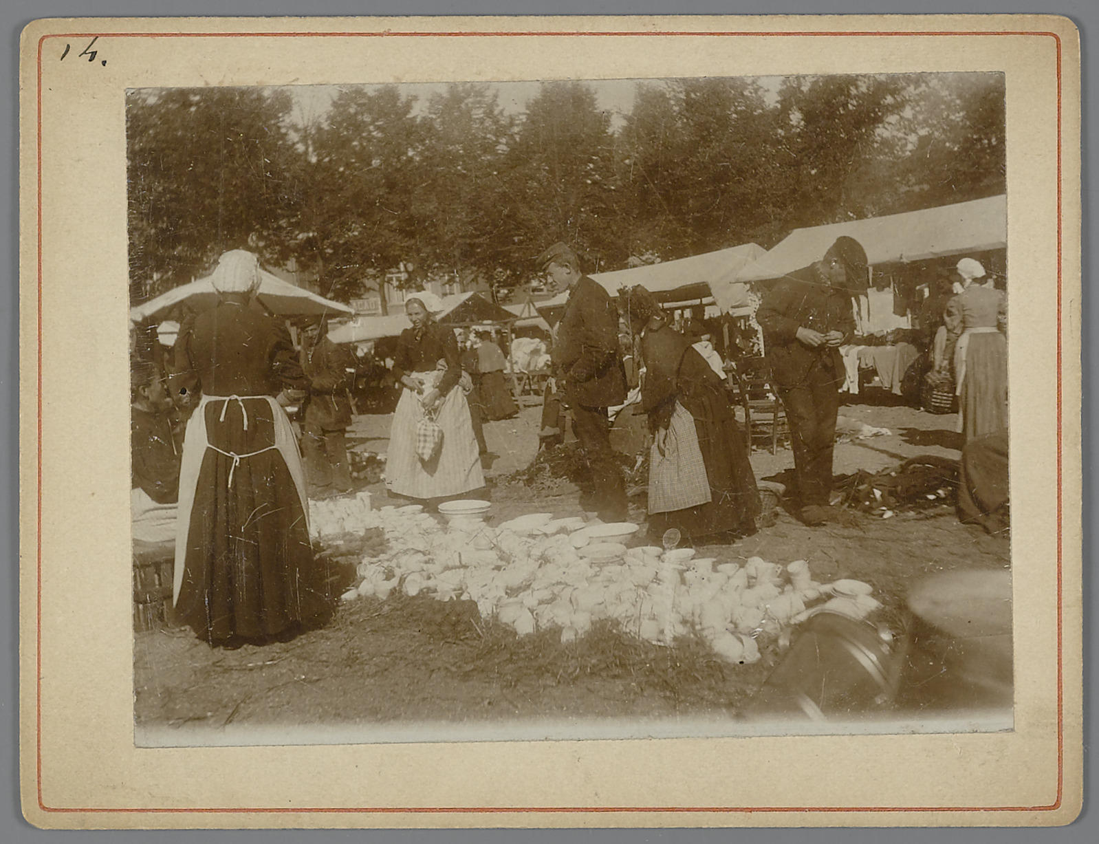 Mannen en vrouwen in Noord-Brabantse streekdracht op...