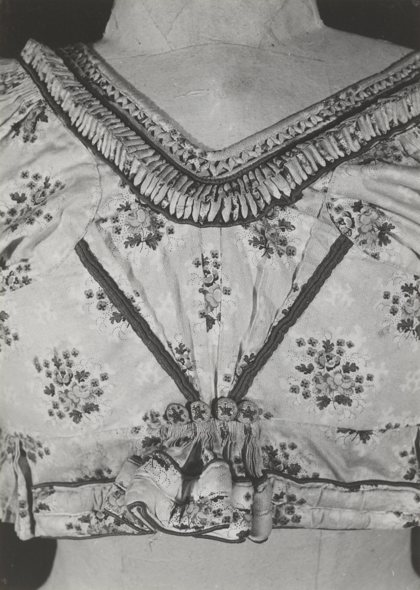 Detail van een hemdrok, 1956 (zwart-wit foto)