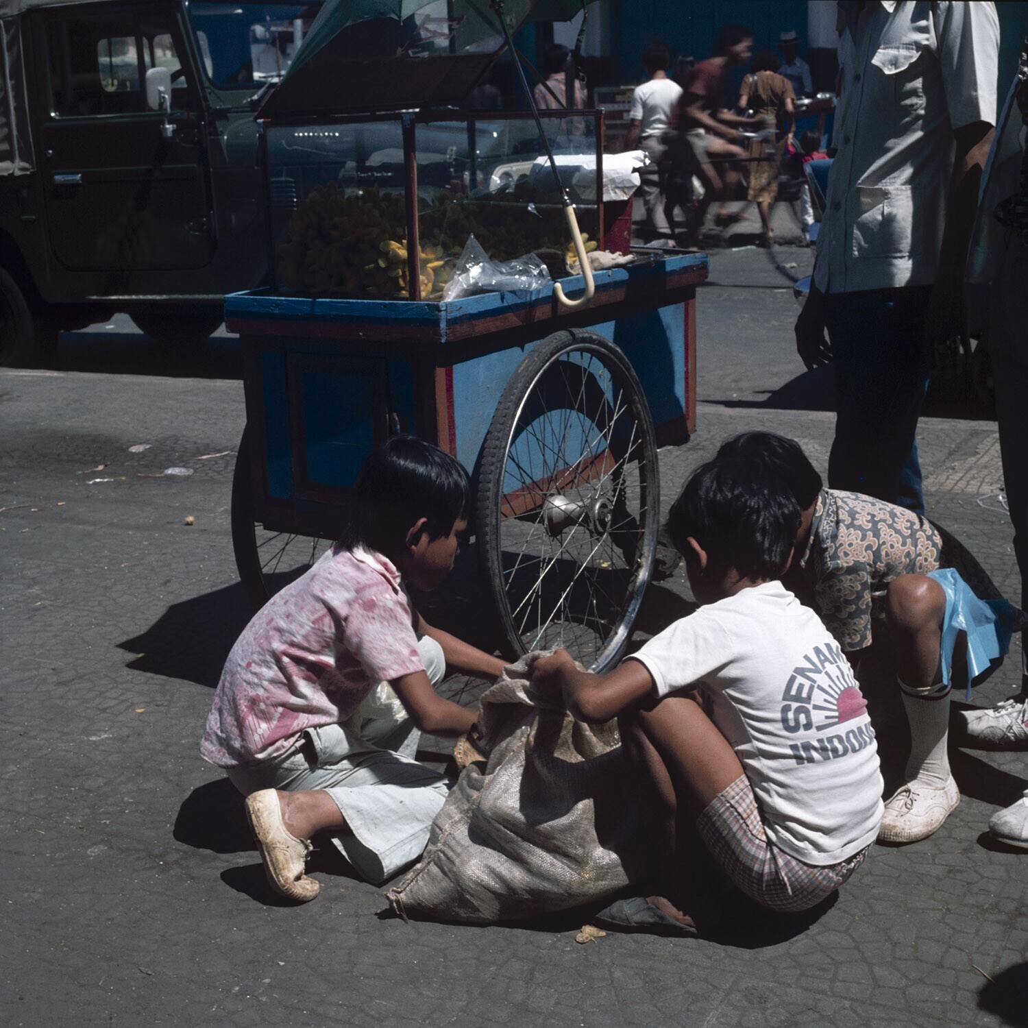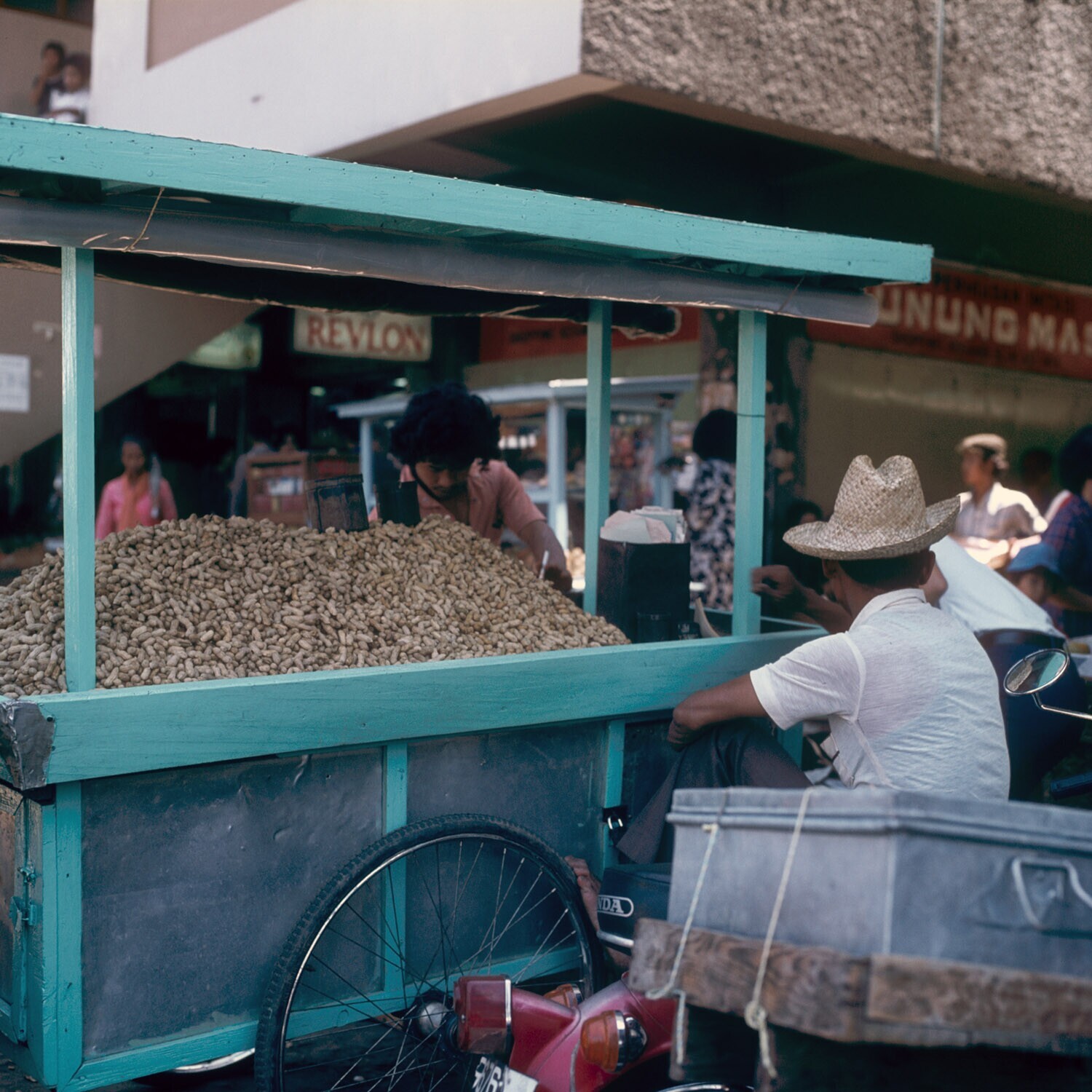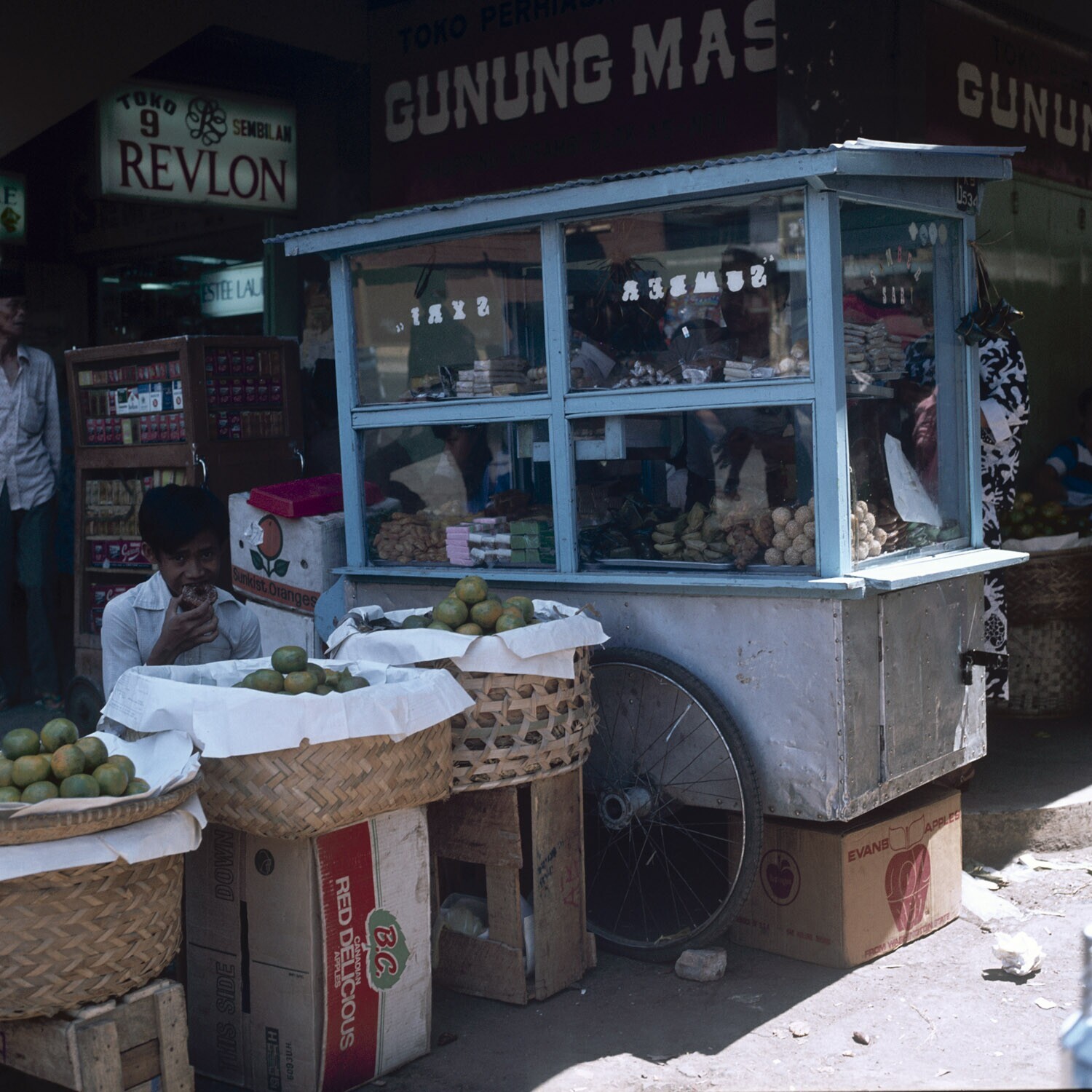 Pasar Kosambi, Bandung. Rijdend stalletje met katjan...