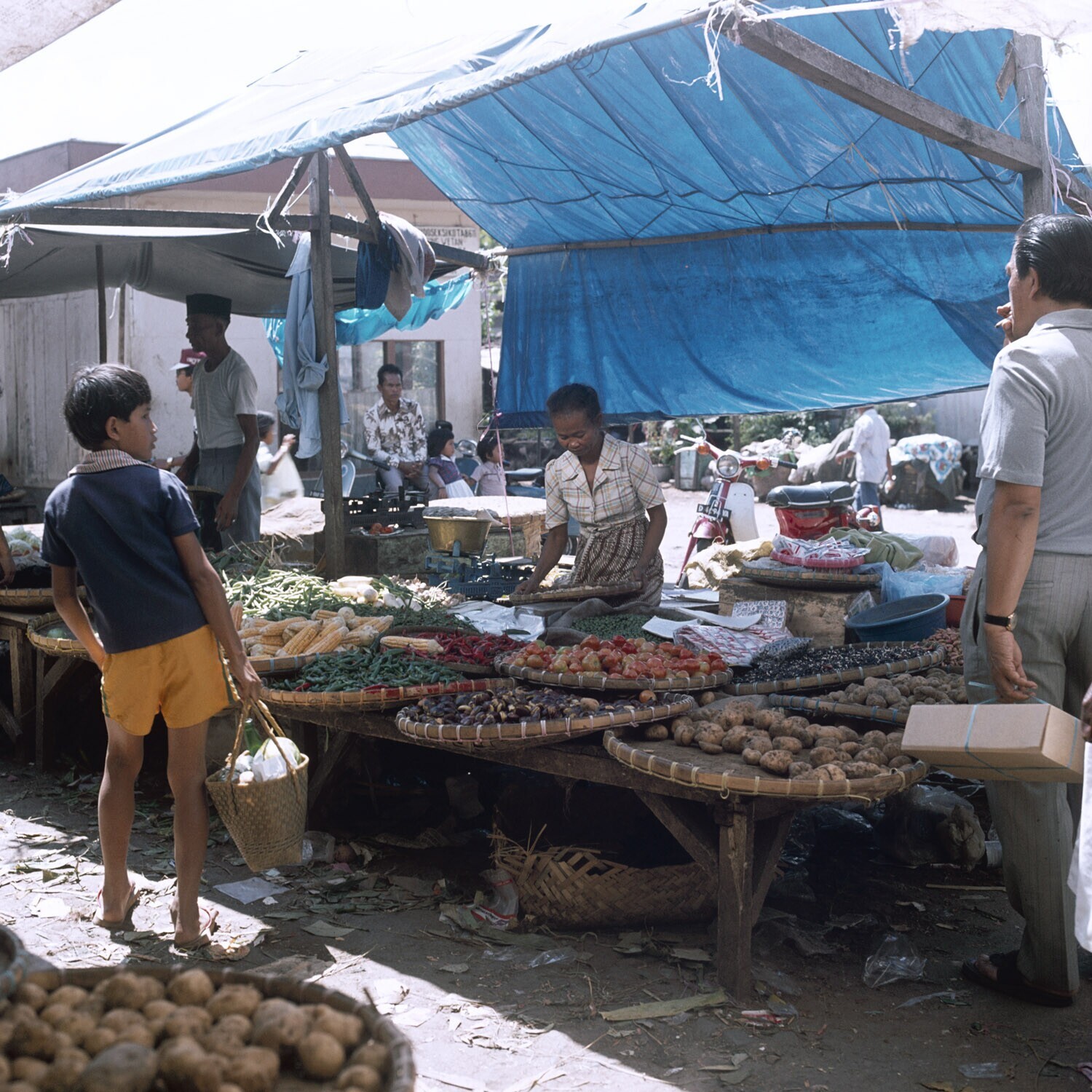 Pasar Kosambi, Bandung. Koffieverkoop.