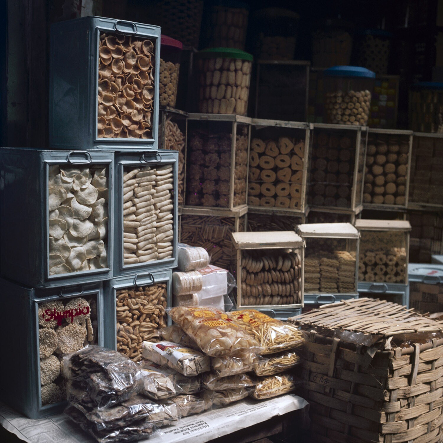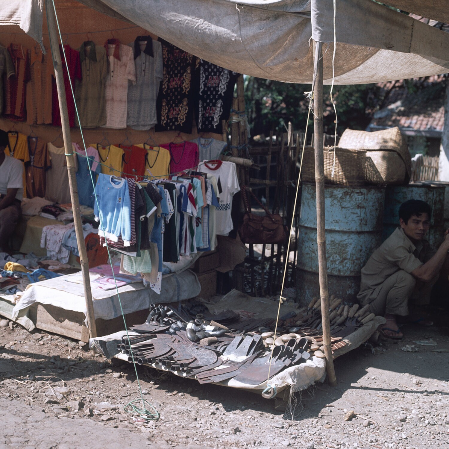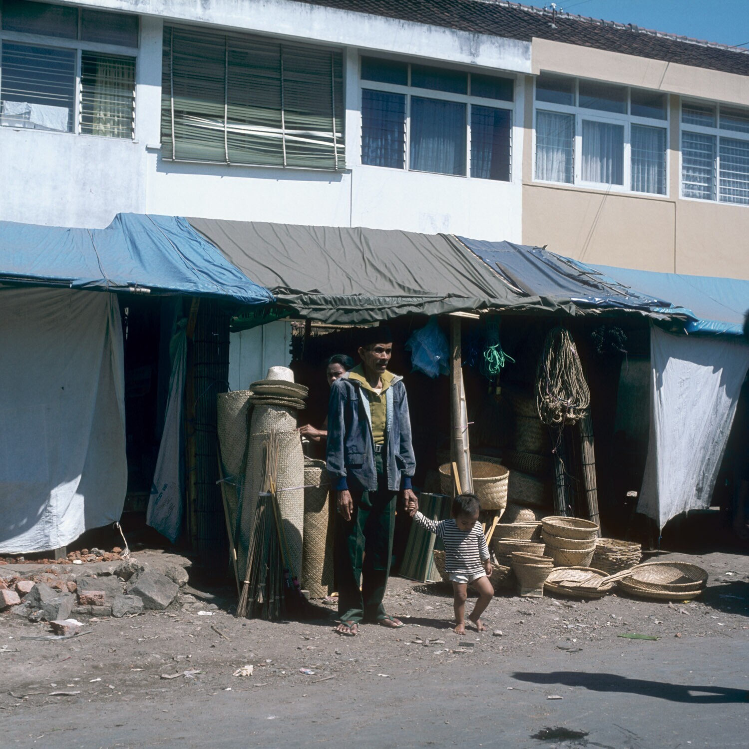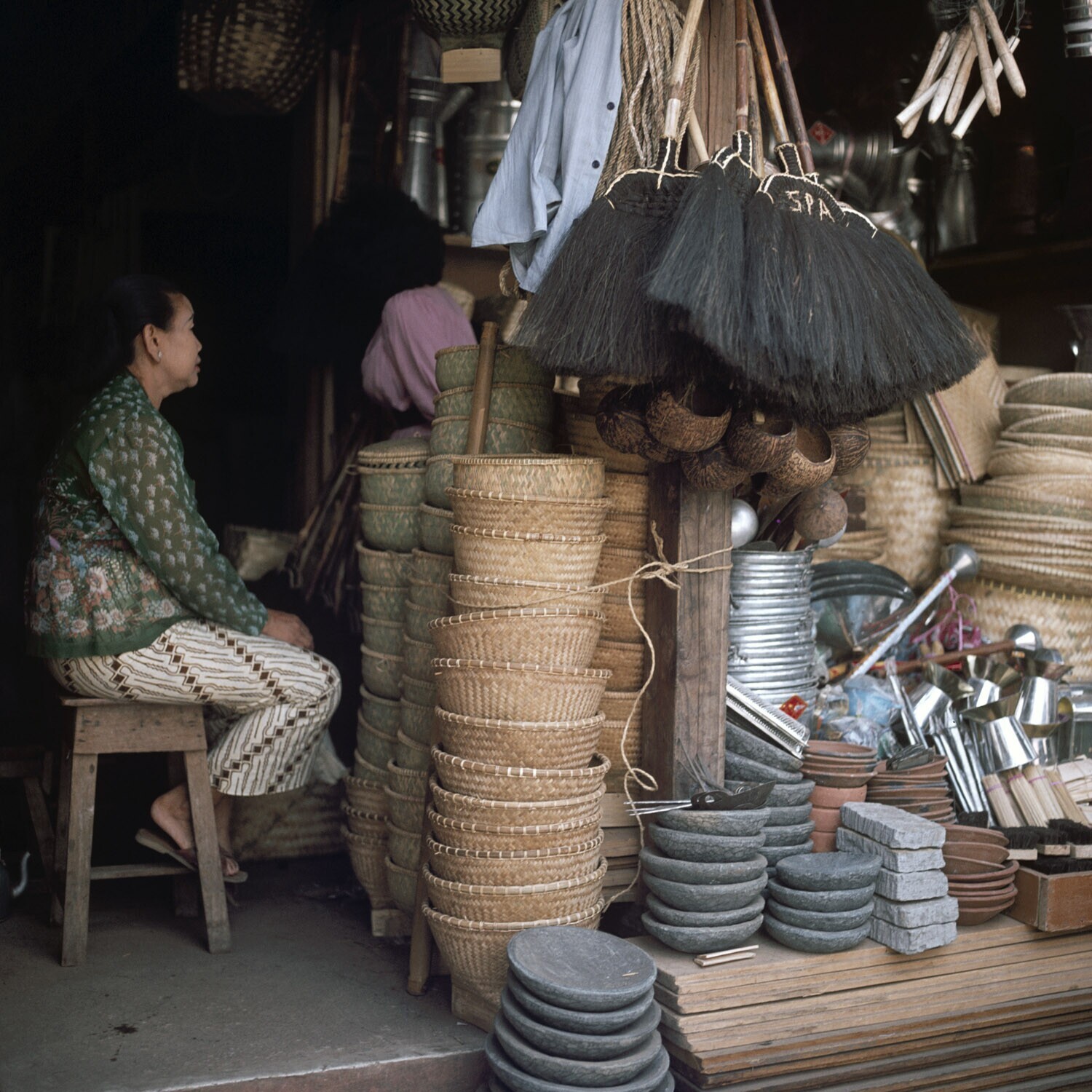 Pasar Kosambi, Bandung. Winkeltje met tikar (mat, gv...