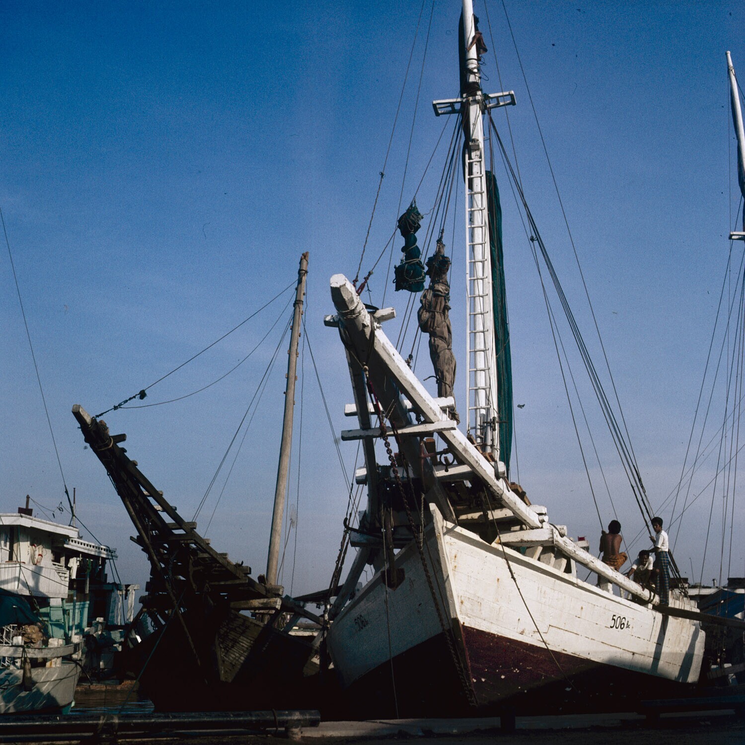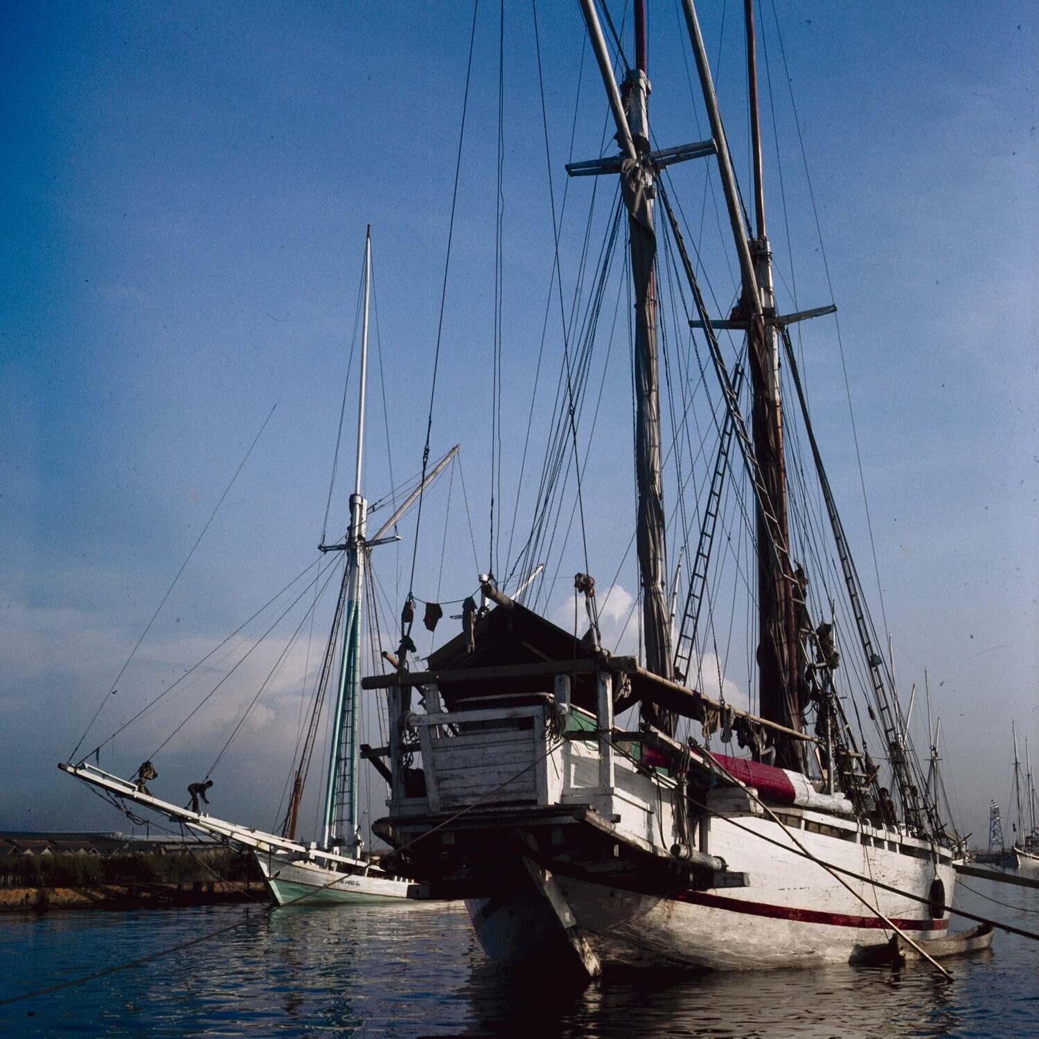 Buginese prauwen langs de kade in de haven Sunda Kelapa