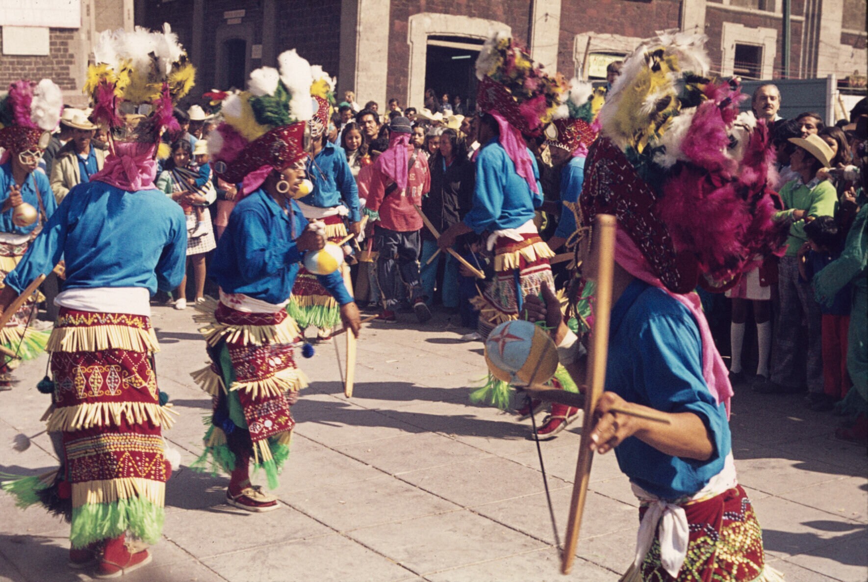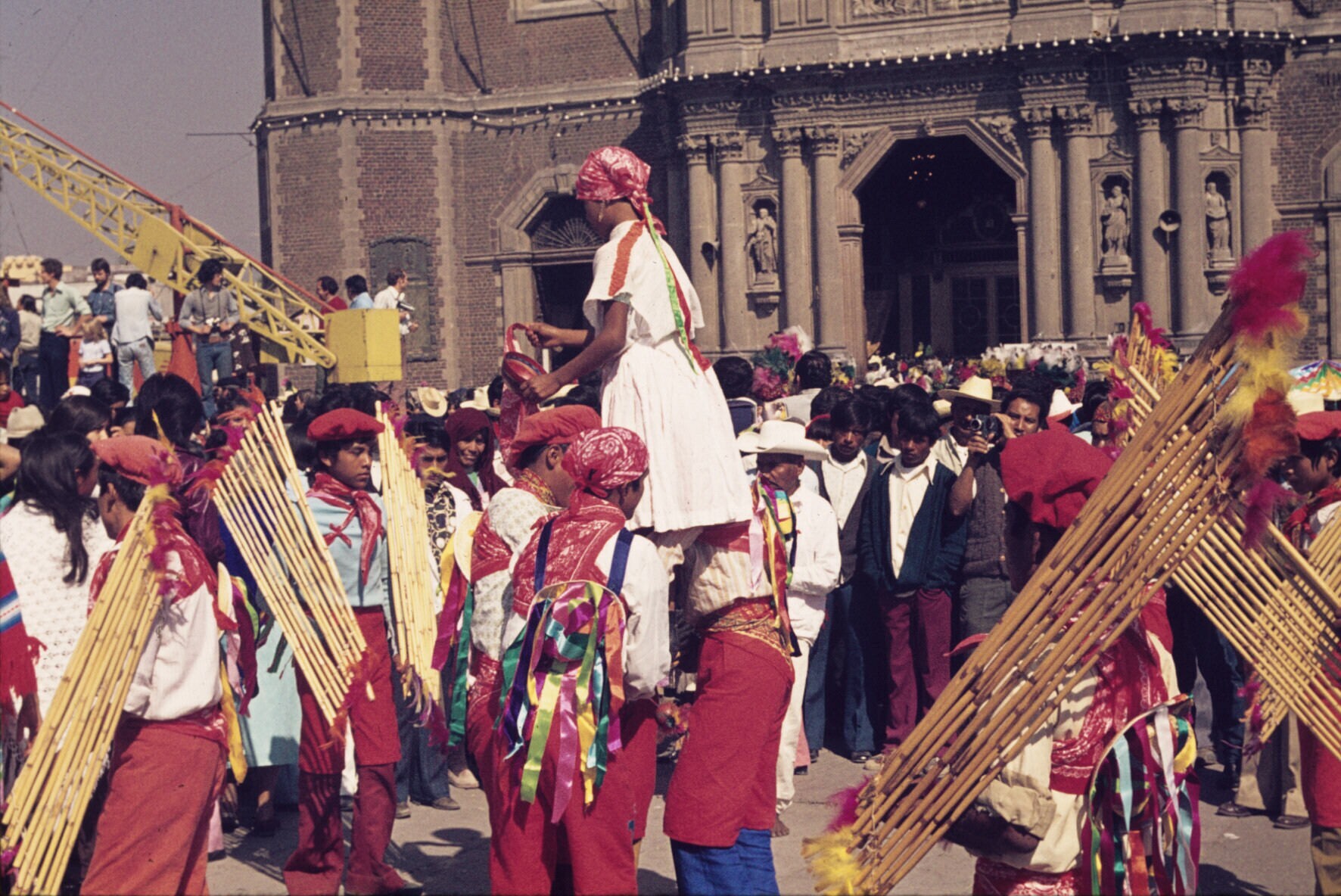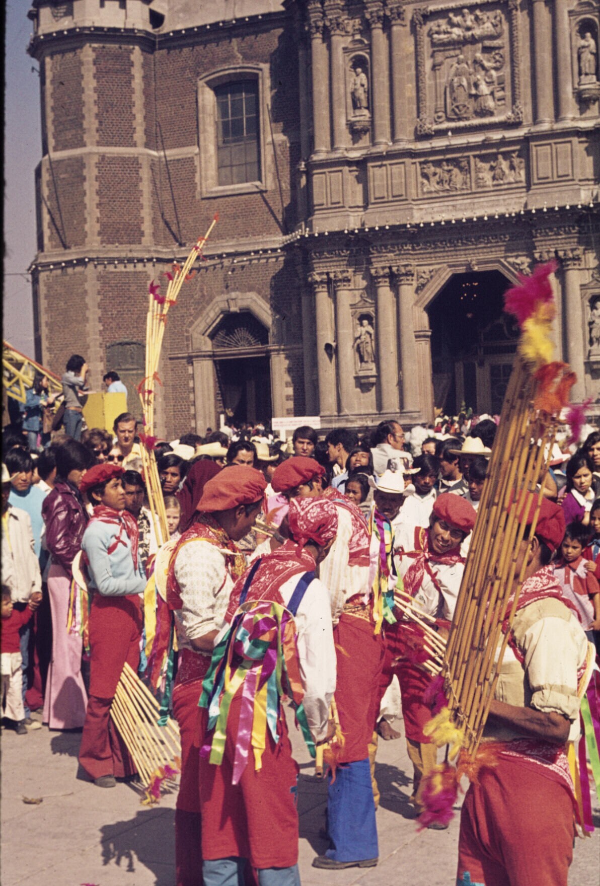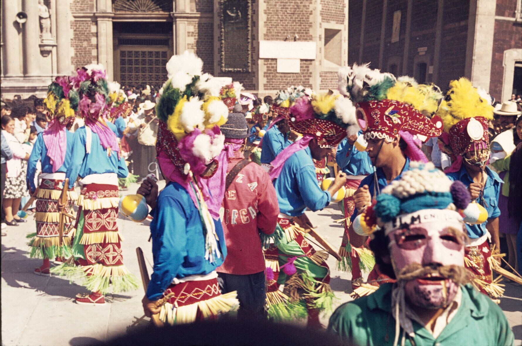 'concheros' (dansers) voor de oude basiliek van Guad...