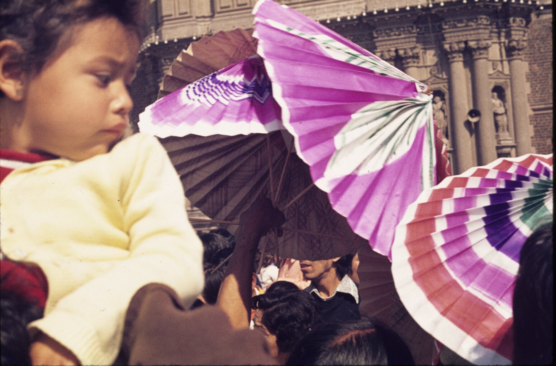 parasolverkoper tussen publiek bij de oude basiliek ...