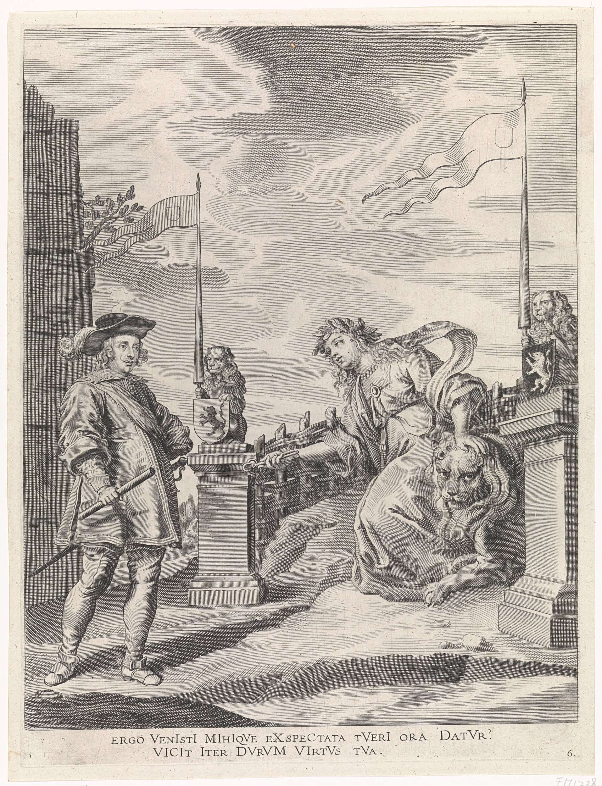 Hertog met personificatie van een stad