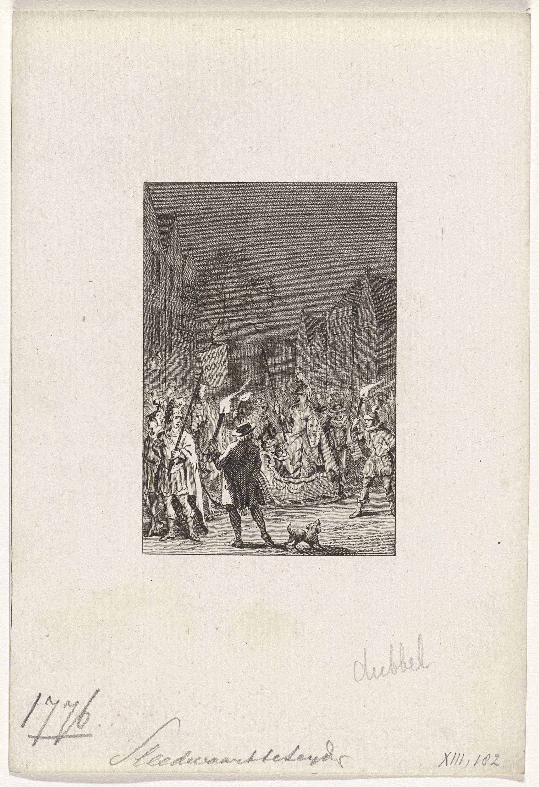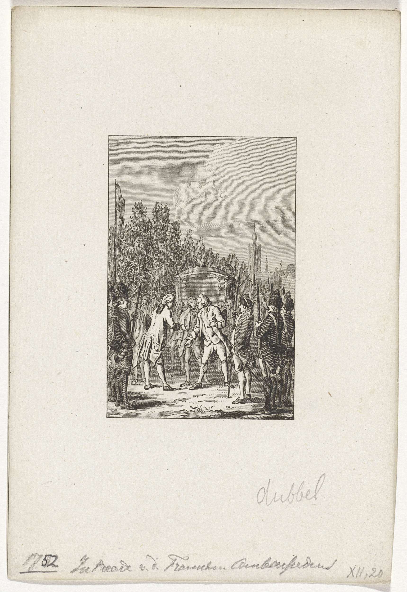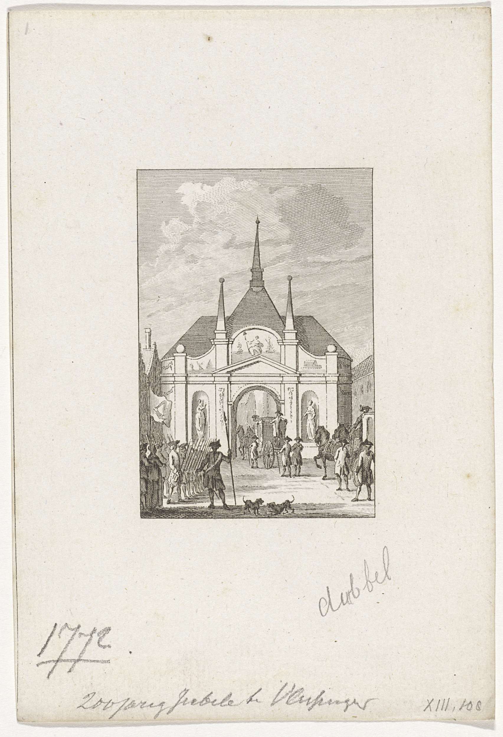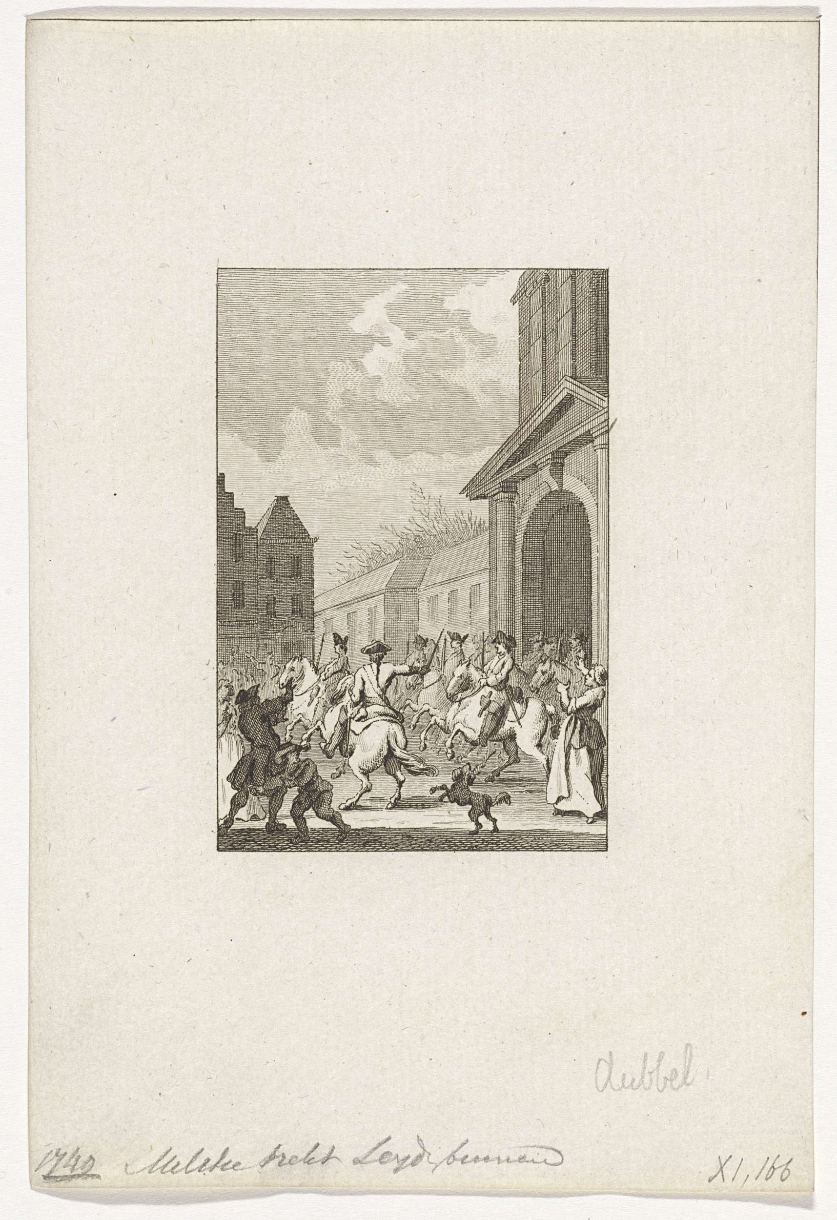 Dragonders trekken door de Witte Poort Leiden in, 1748
