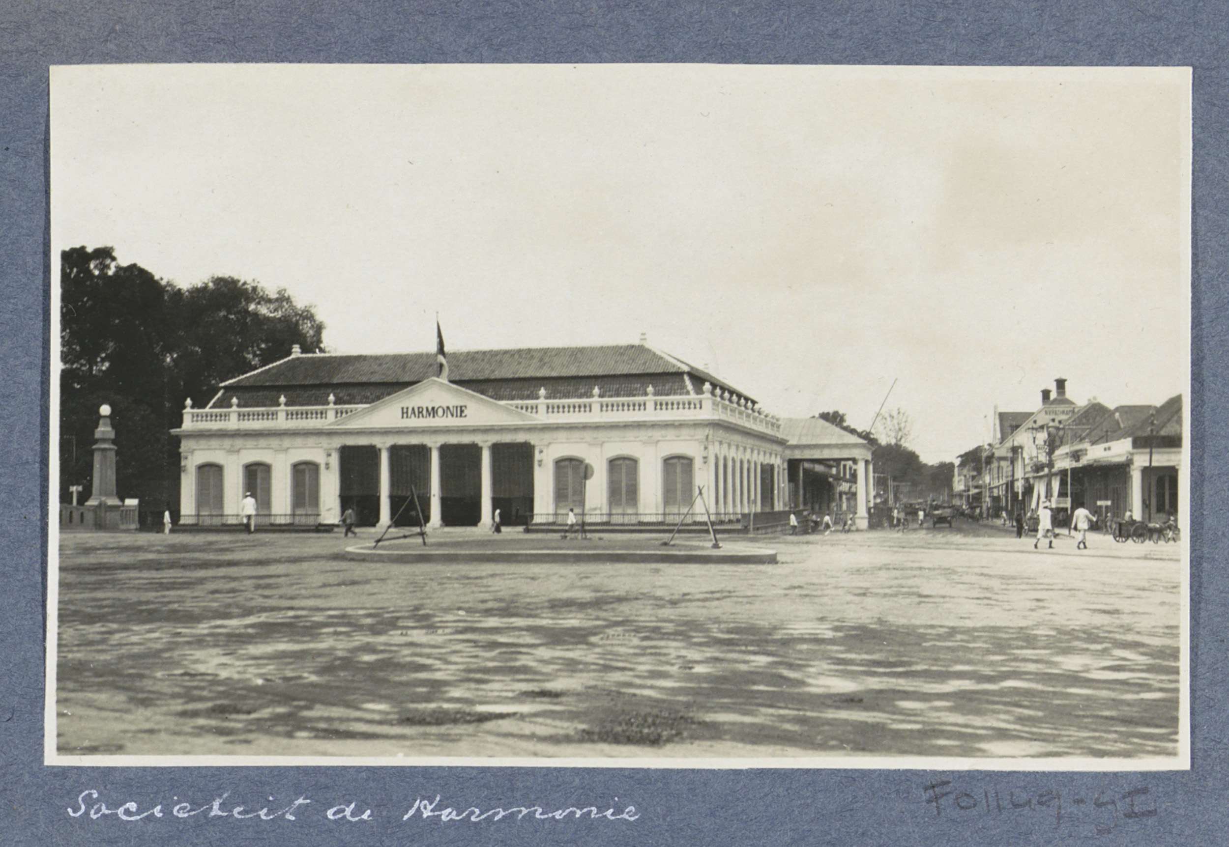 Exterieur van Sociëteit Harmonie in Batavia