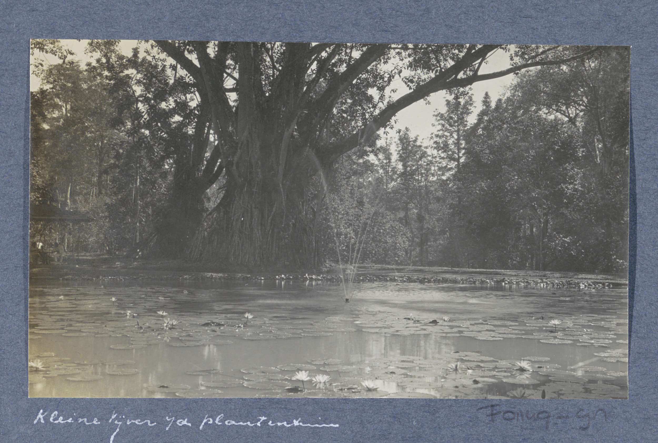 Bomen en kleine vijver in 's Lands Plantentuin te Bu...