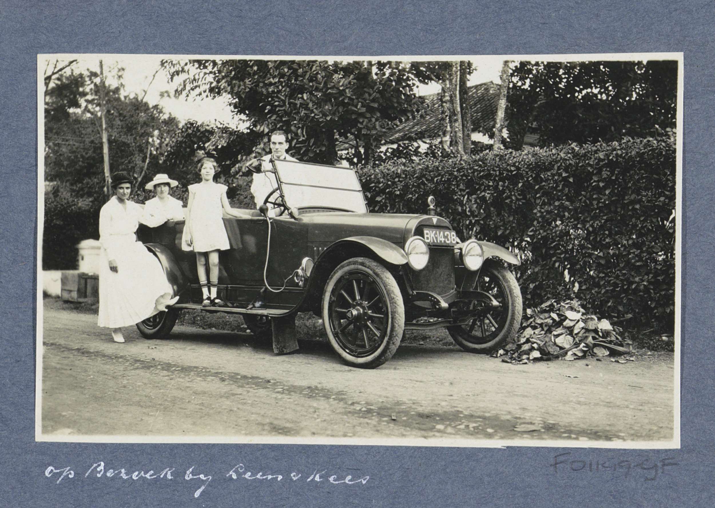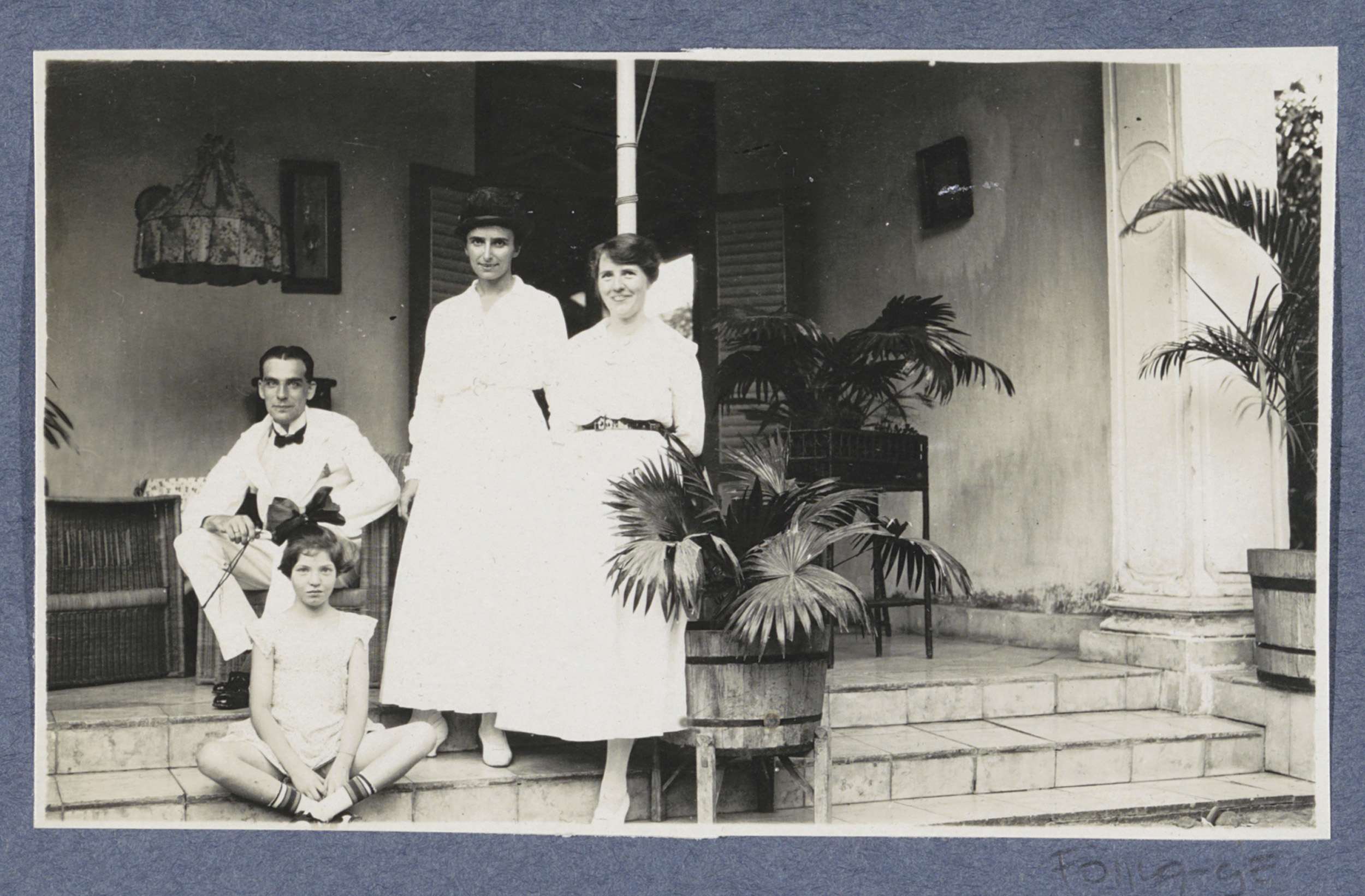 Twee vrouwen, een man en een meisje poserend bij een...