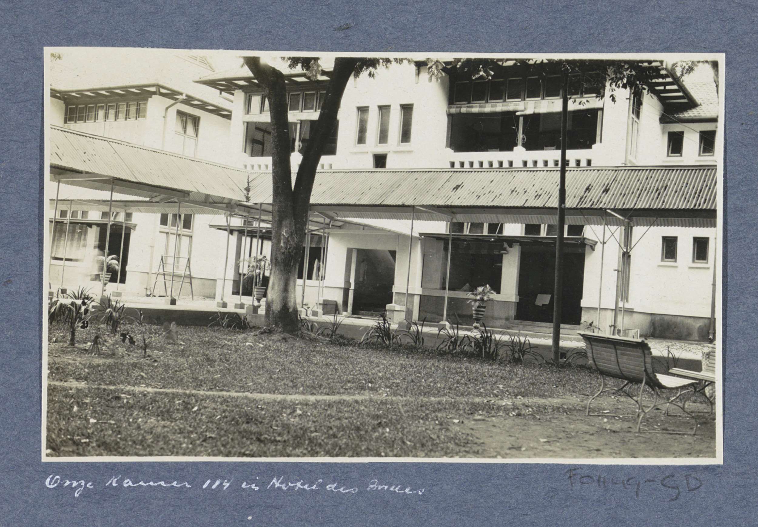 Gezicht op kamer 114 van Hotel des Indes in Batavia