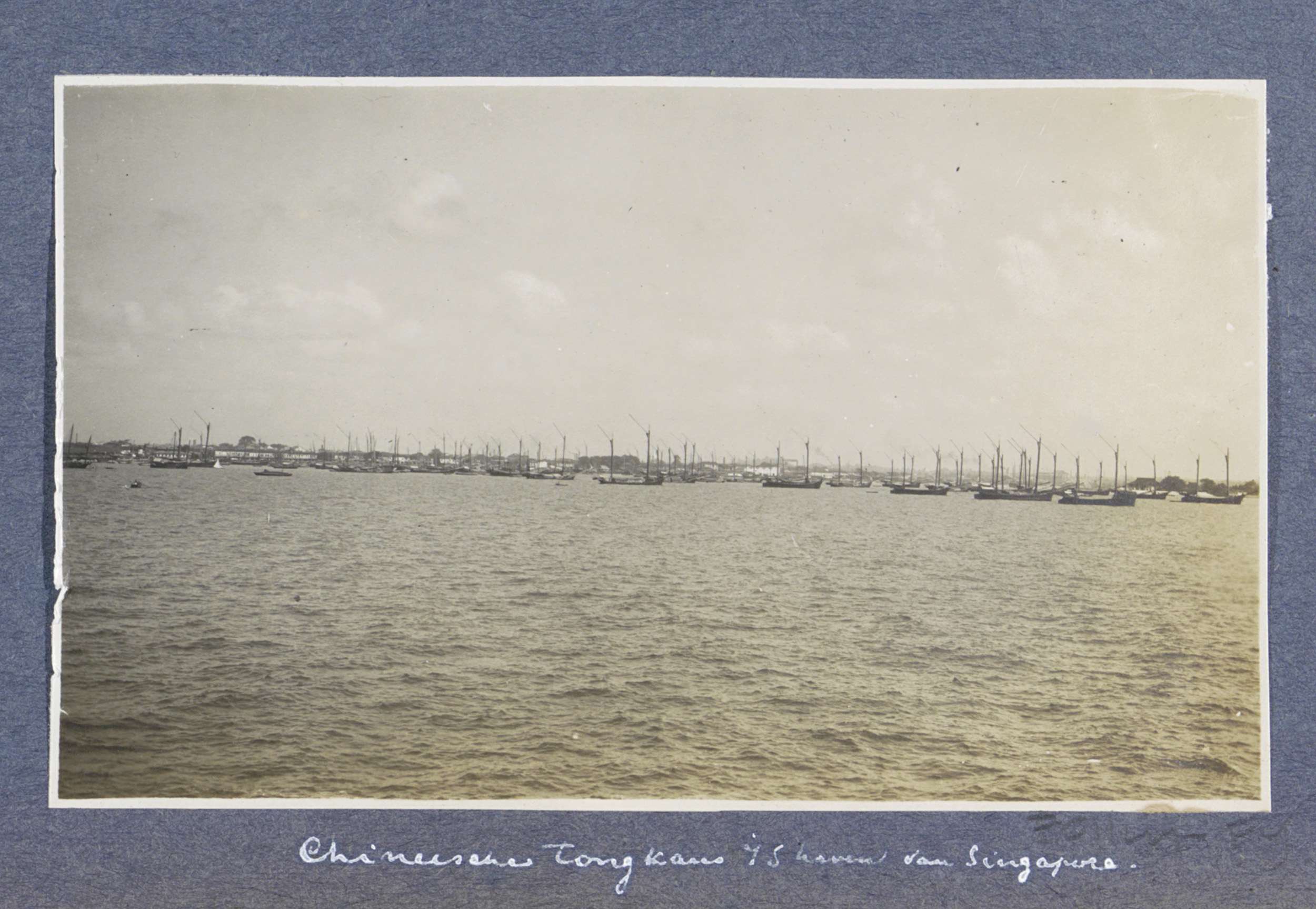 Chinese schepen (tongkans) in haven van Singapore