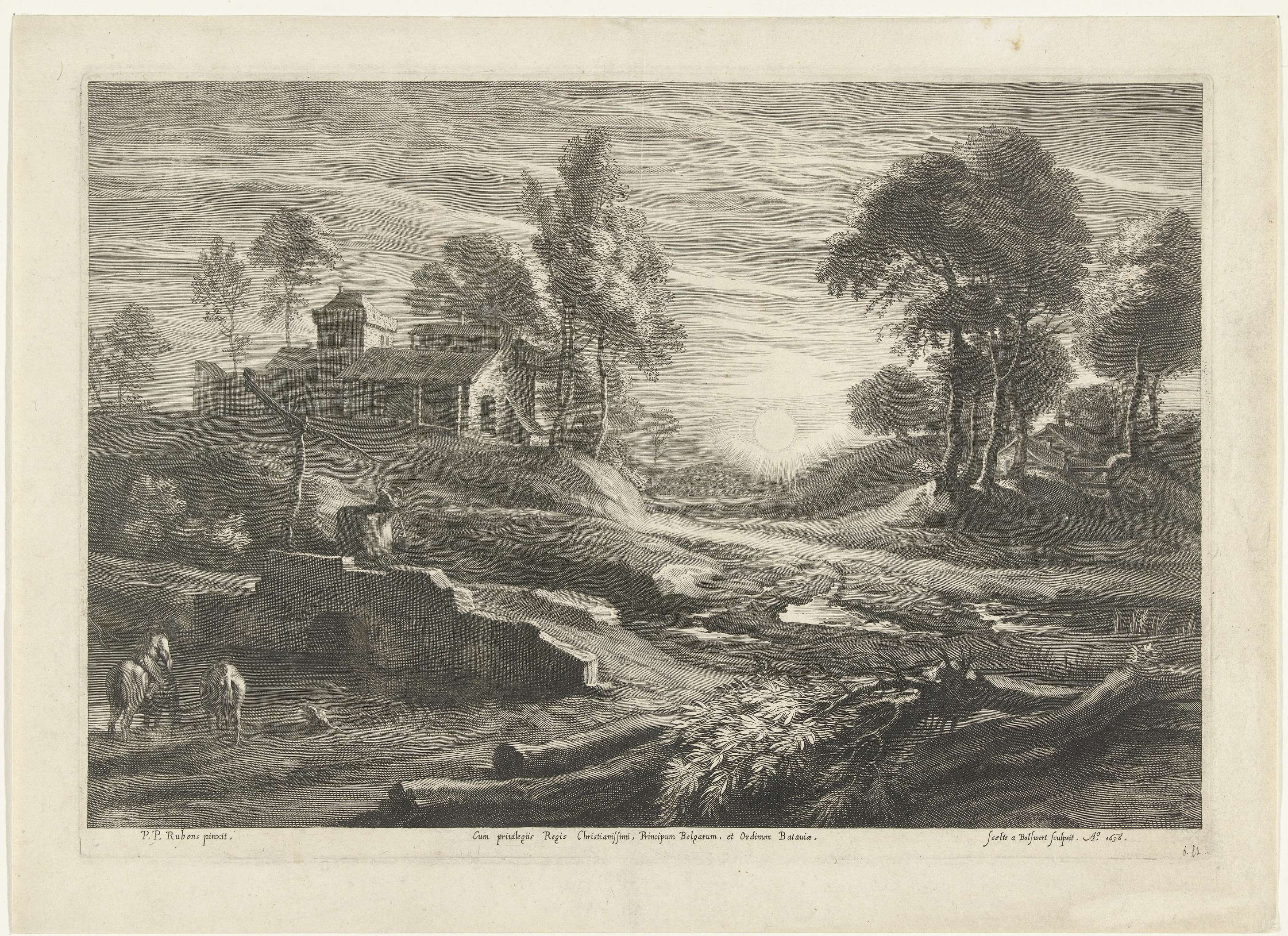 Landschap met waterput en zon