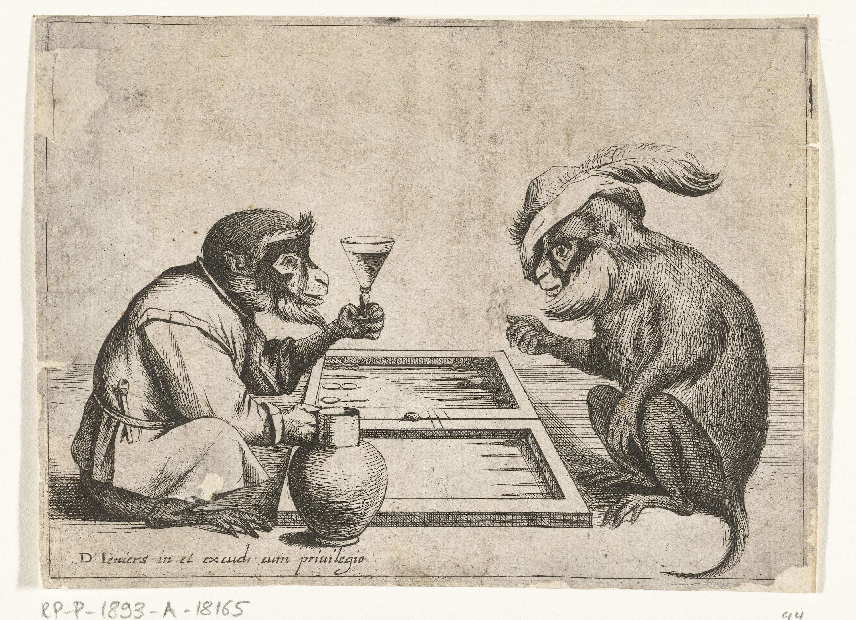 Twee apen spelen triktrak