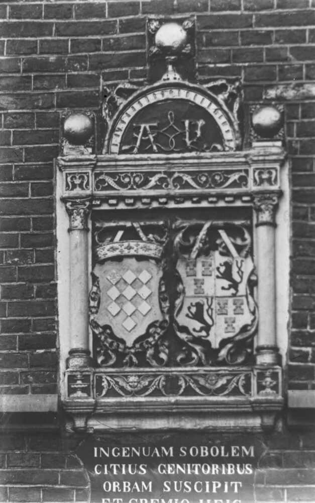 Foto, voorstellende een wapensteen in muur Elisabeth...