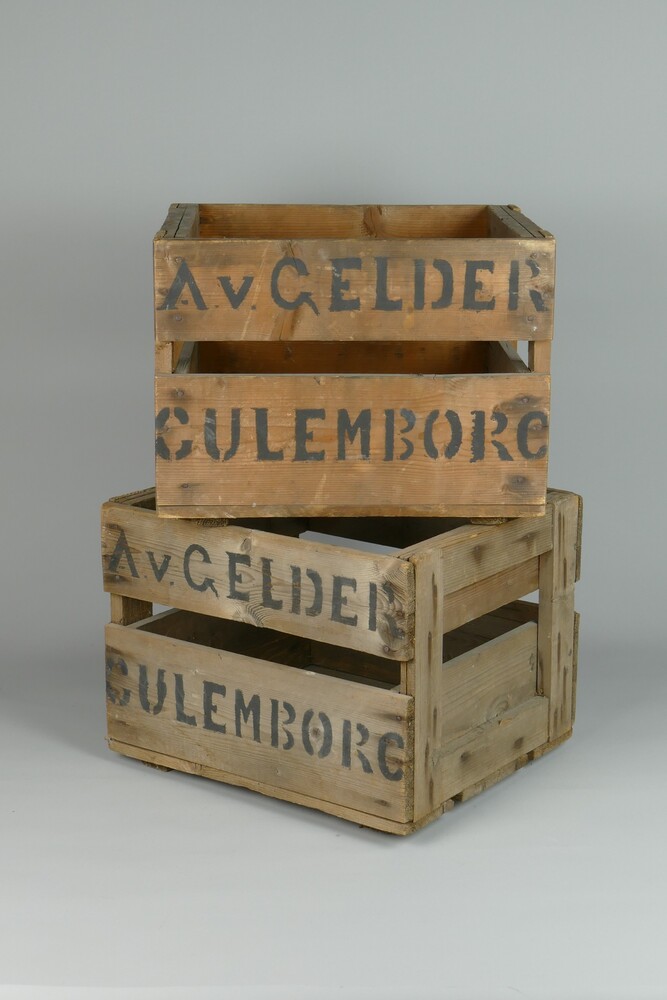 Krat voor flessen geassocieerd met A. van Gelder, Cu...