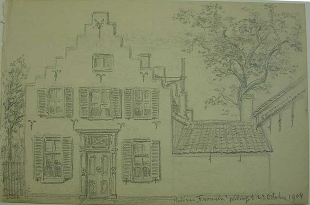 Tekening van papier voorstellende huis Frowein te Ze...
