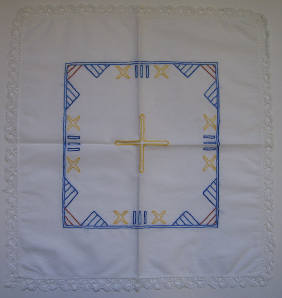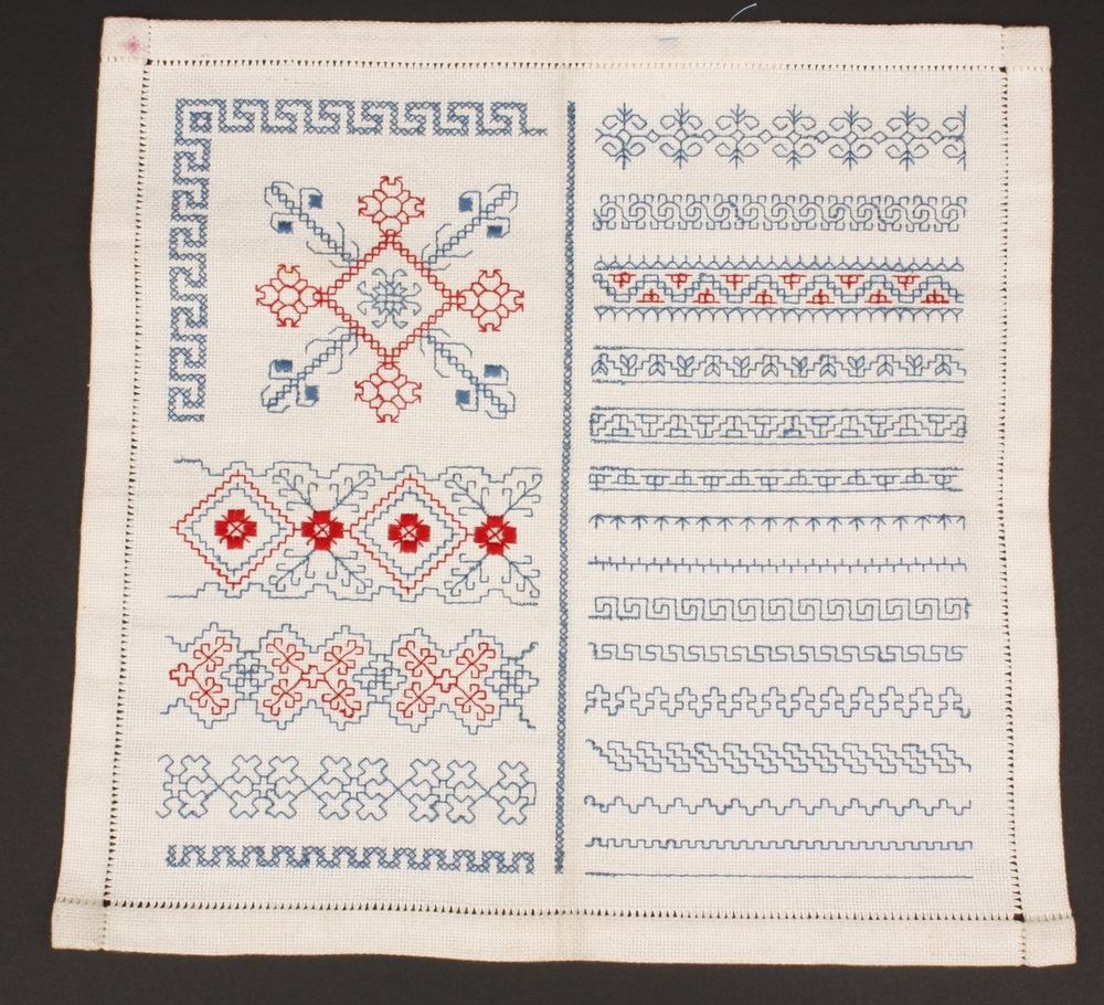 proeflap van katoen, vervaardigd door leerling, circ...