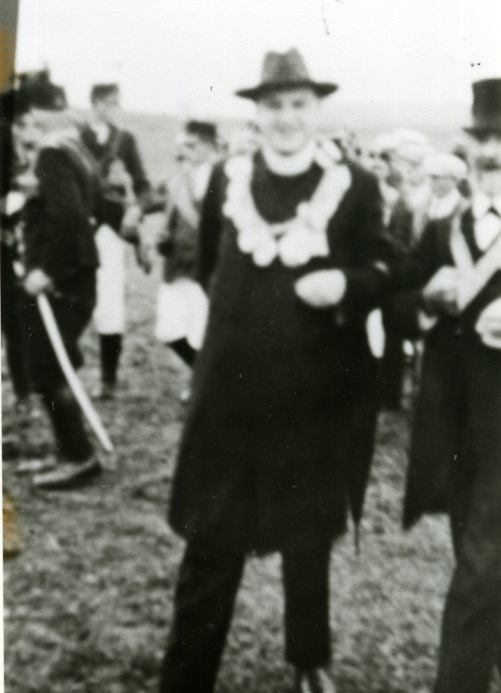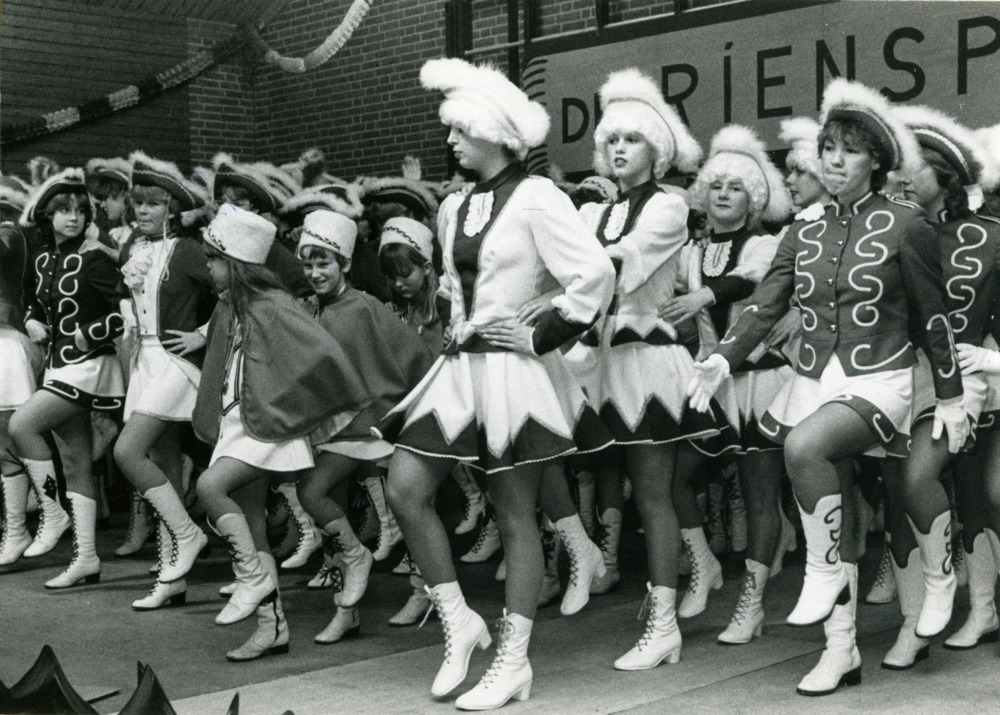 Zwart-wit foto van de dansgarde van de Rienspiekers ...