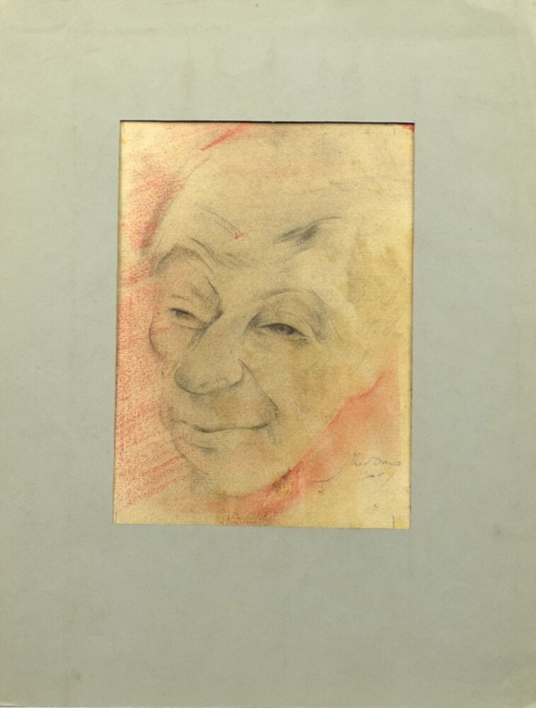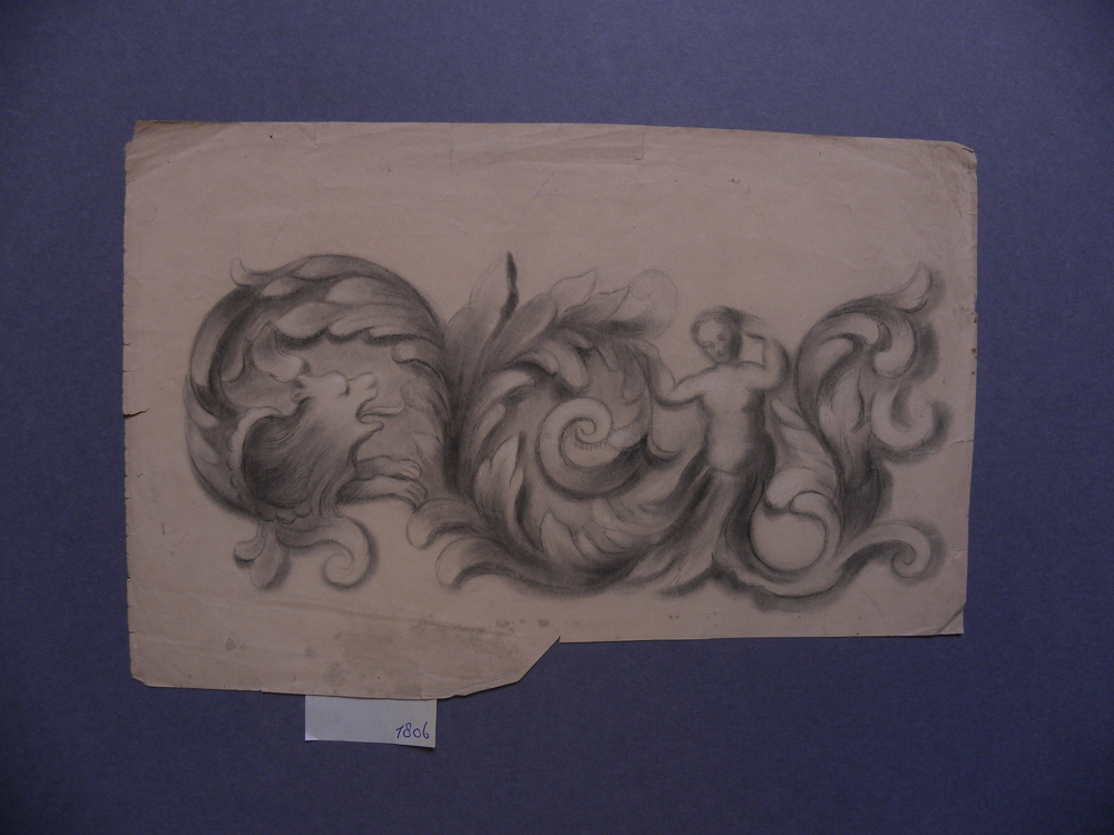Tekening op papier voorstellende rank met leeuwenkop...