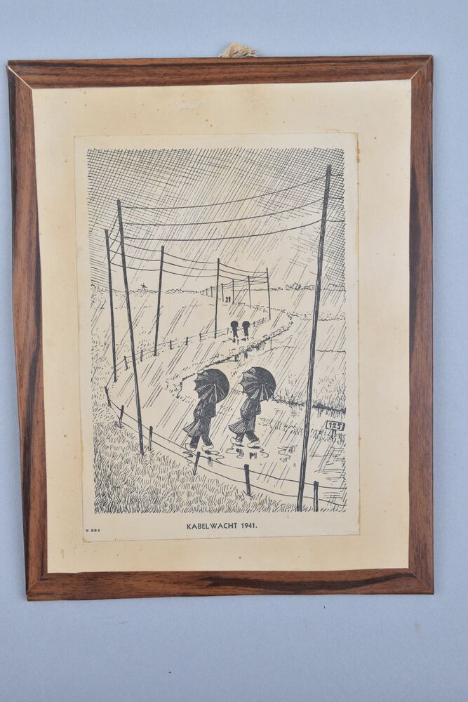 Houten lijst met een afdruk van een tekening "Kabelw...