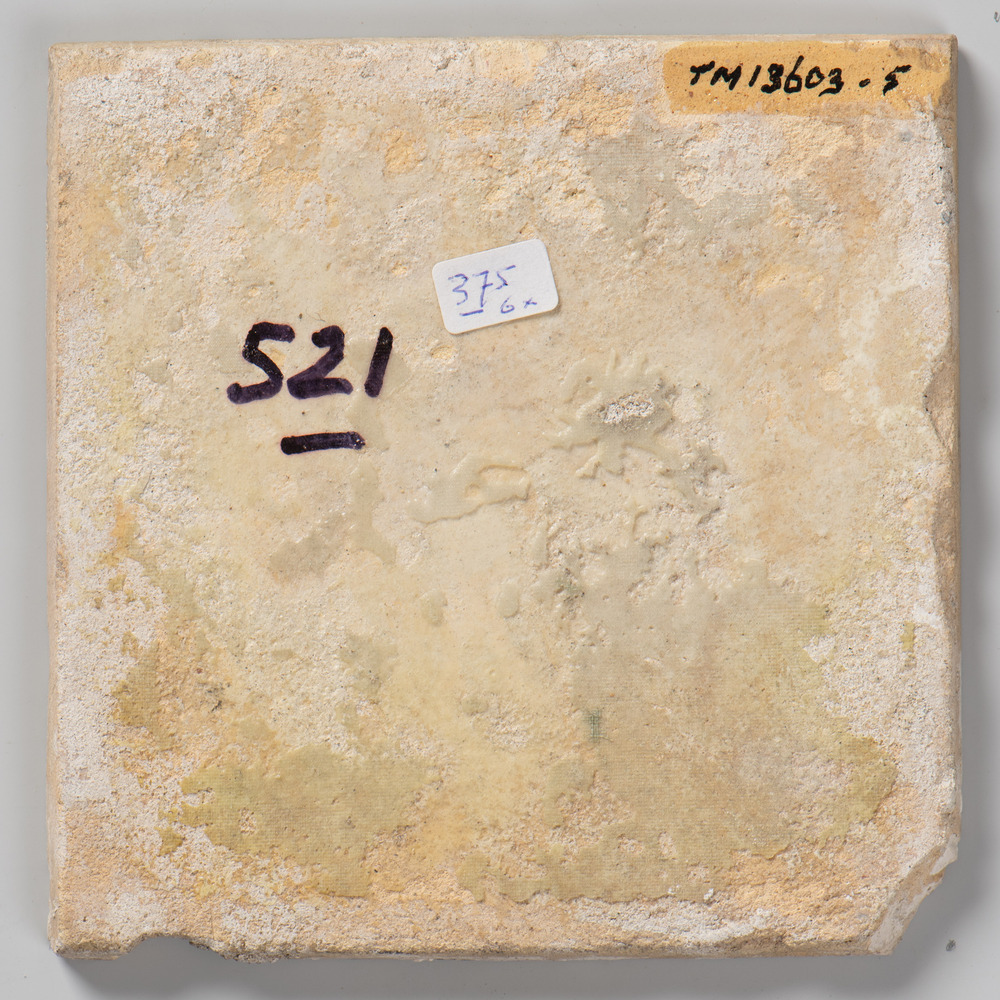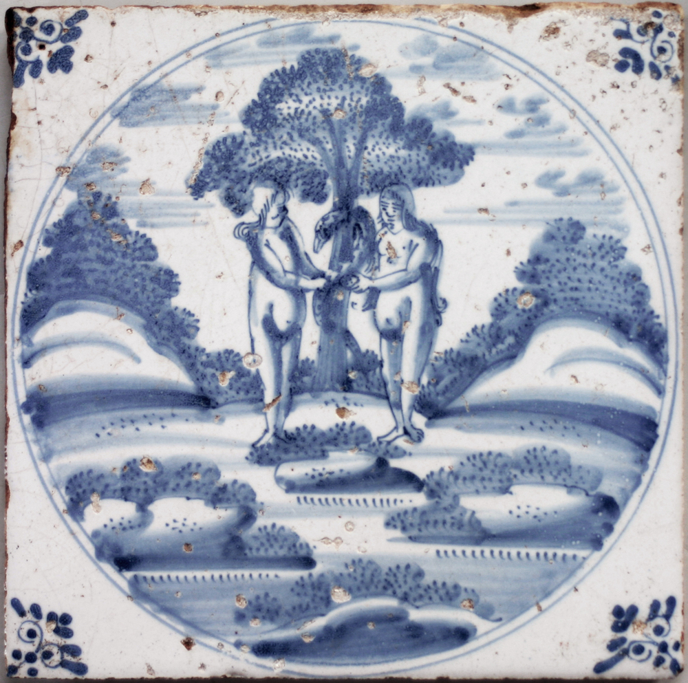 tegel van aardewerk met tinglazuur, voorstellende: l...