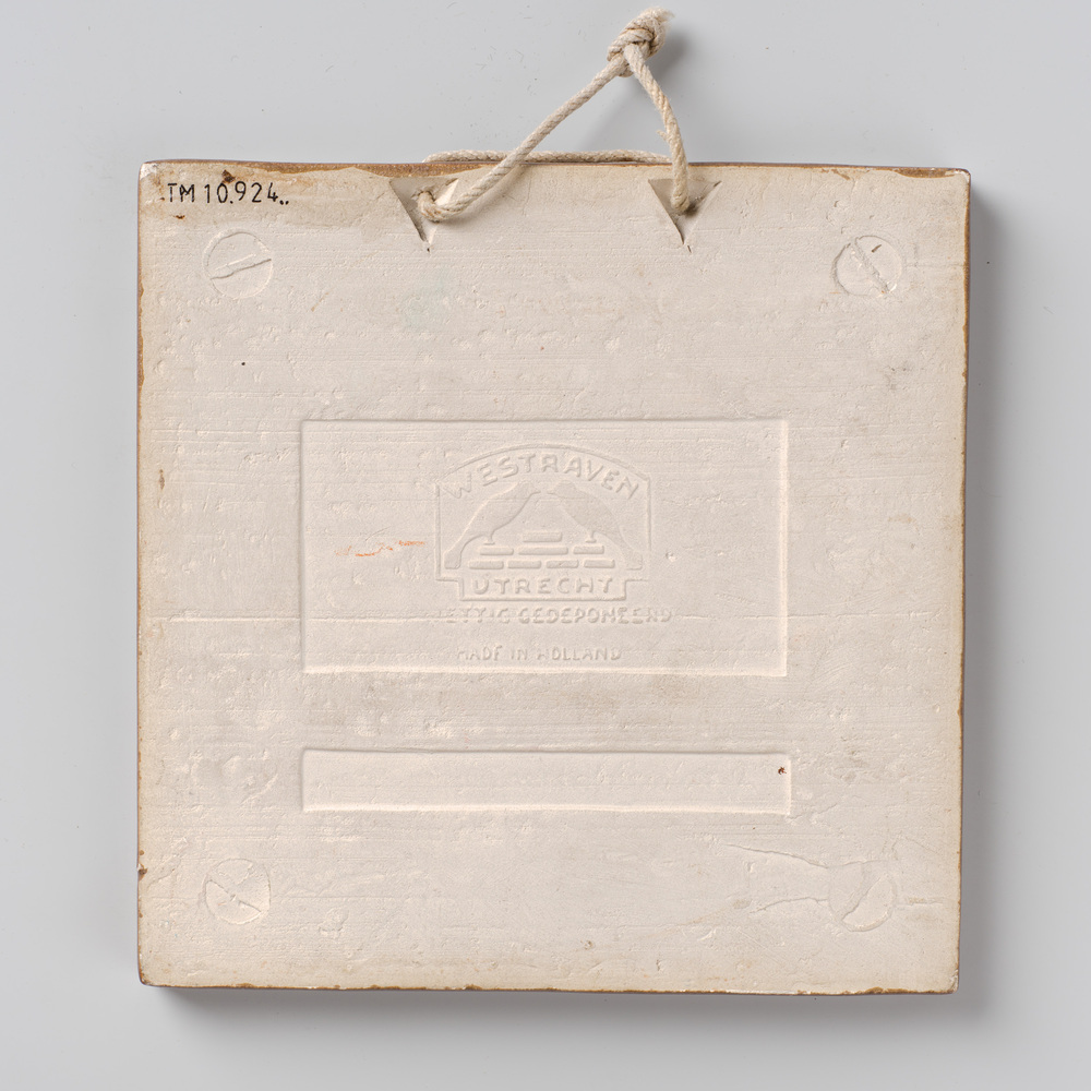 tegel van keramiek met tinglazuur, voorstellende: la...