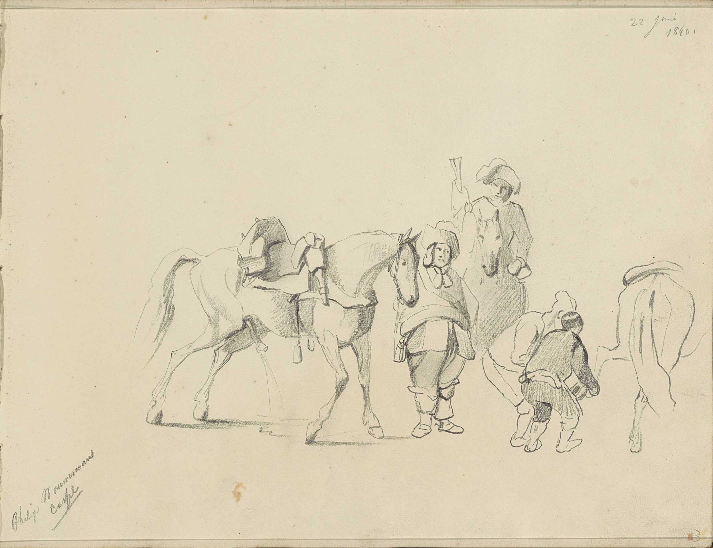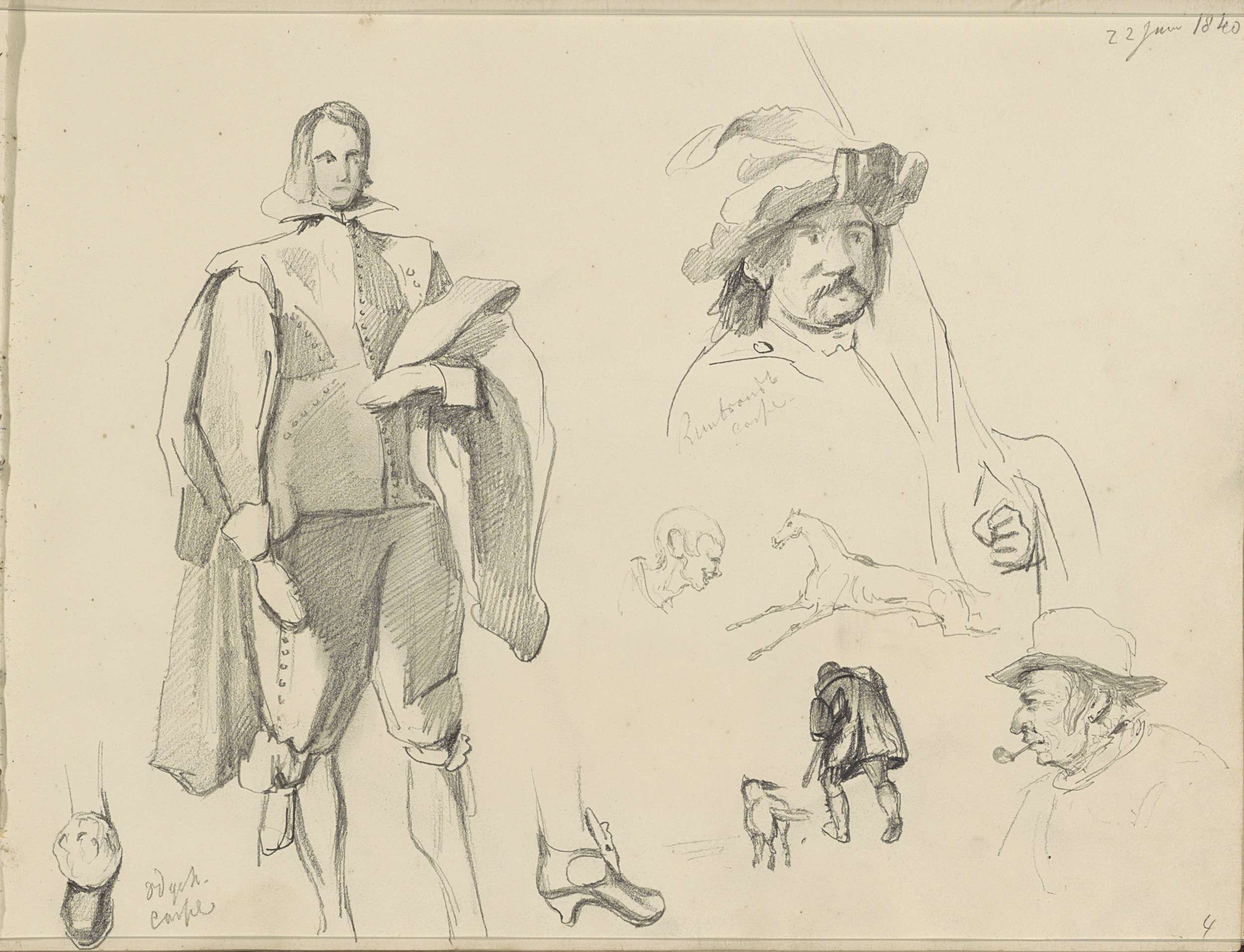Paard, figuurstudies en een zelfportret naar Rembrandt