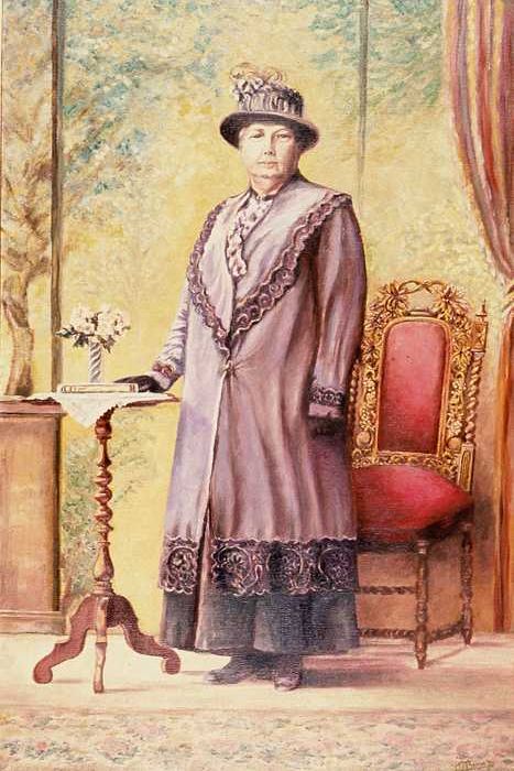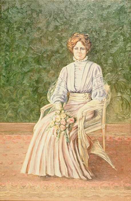 Portret van grootmoeder van Pia Bram in grijze jurk ...