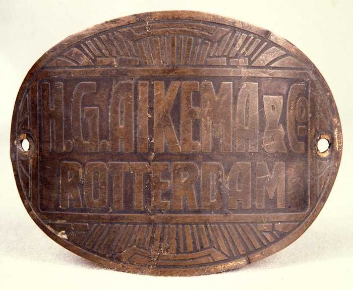 Ovale naamplaat "H.G. AIKEMA & Co ROTTERDAM"
