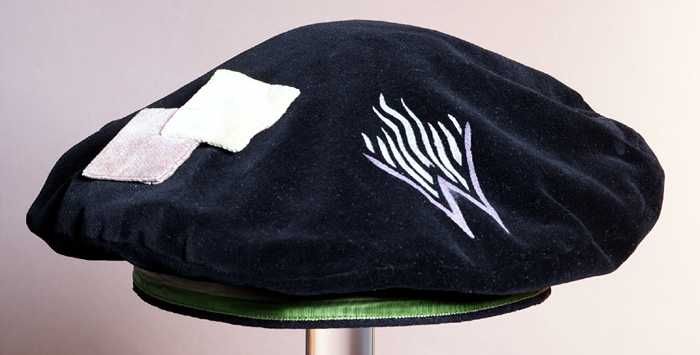 Embleem, legergroen keperkatoen met geborduurd wapen...