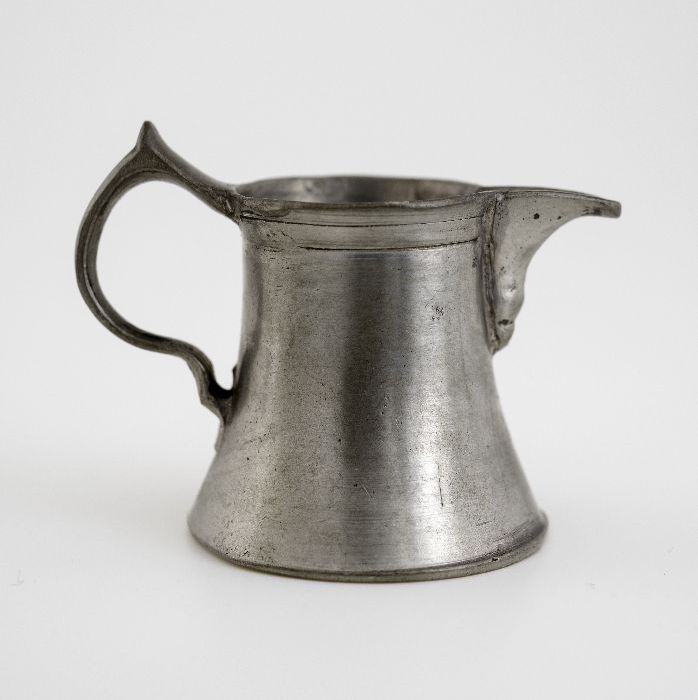 Witte melkbeker met bollende wand, met groen embleem...