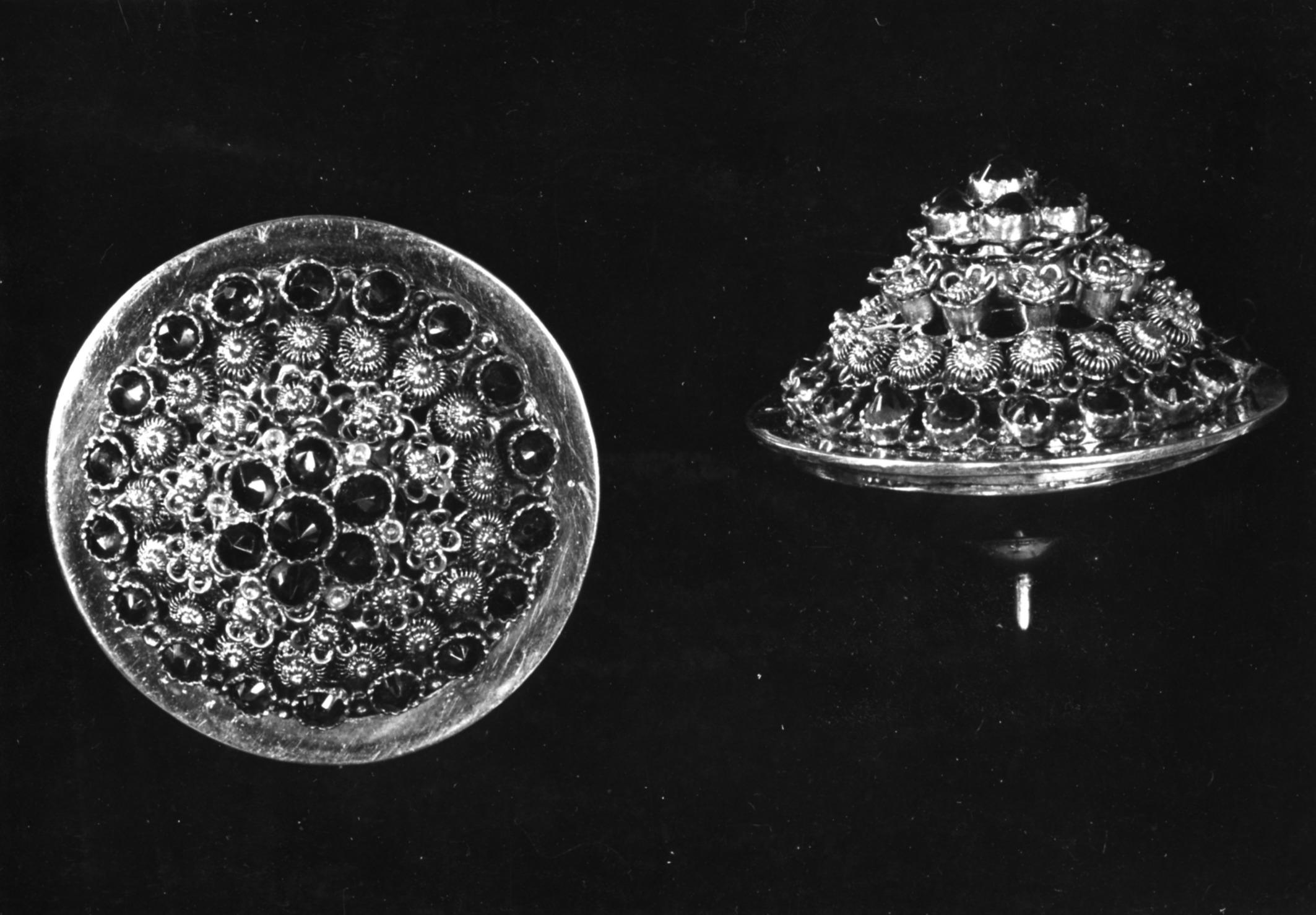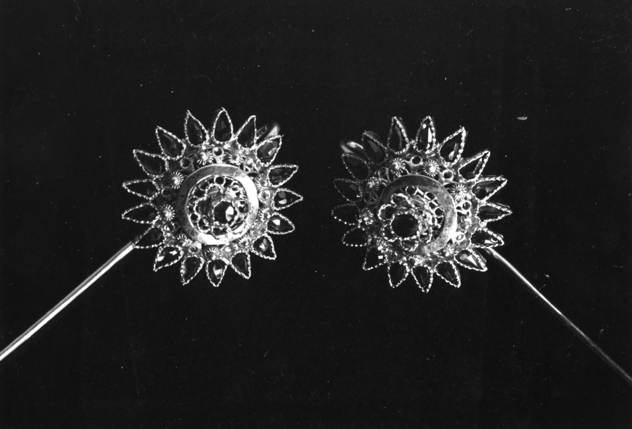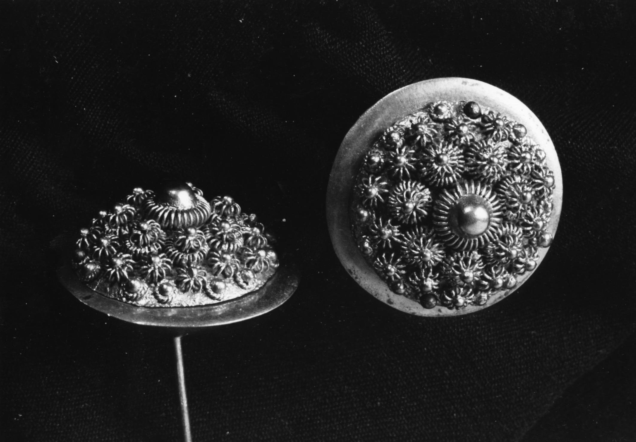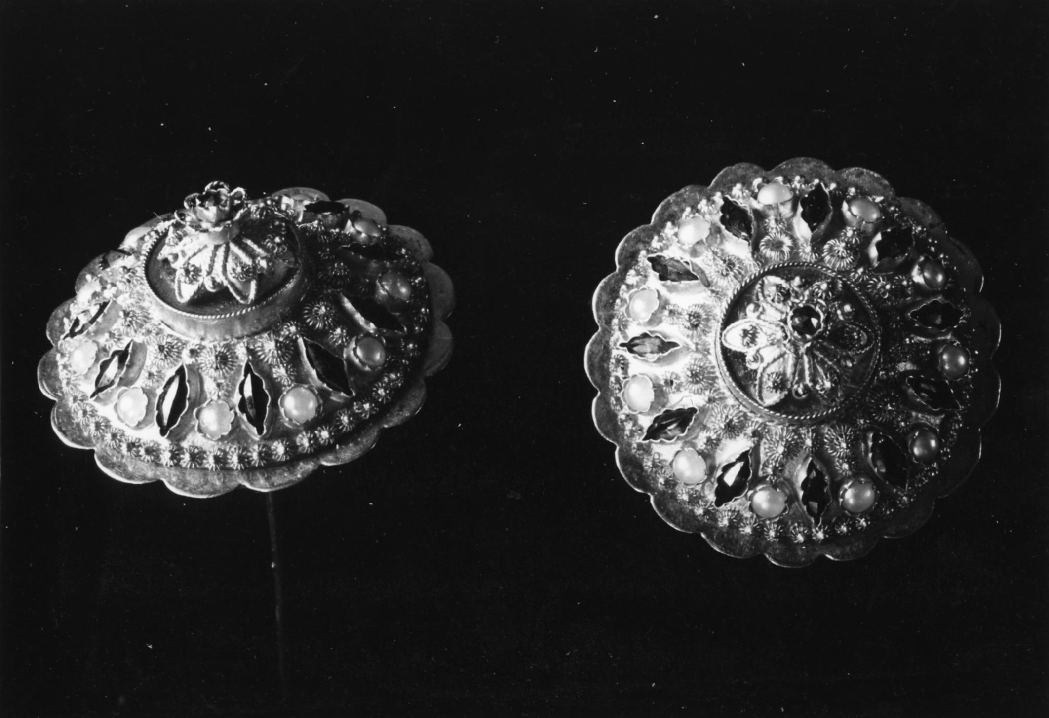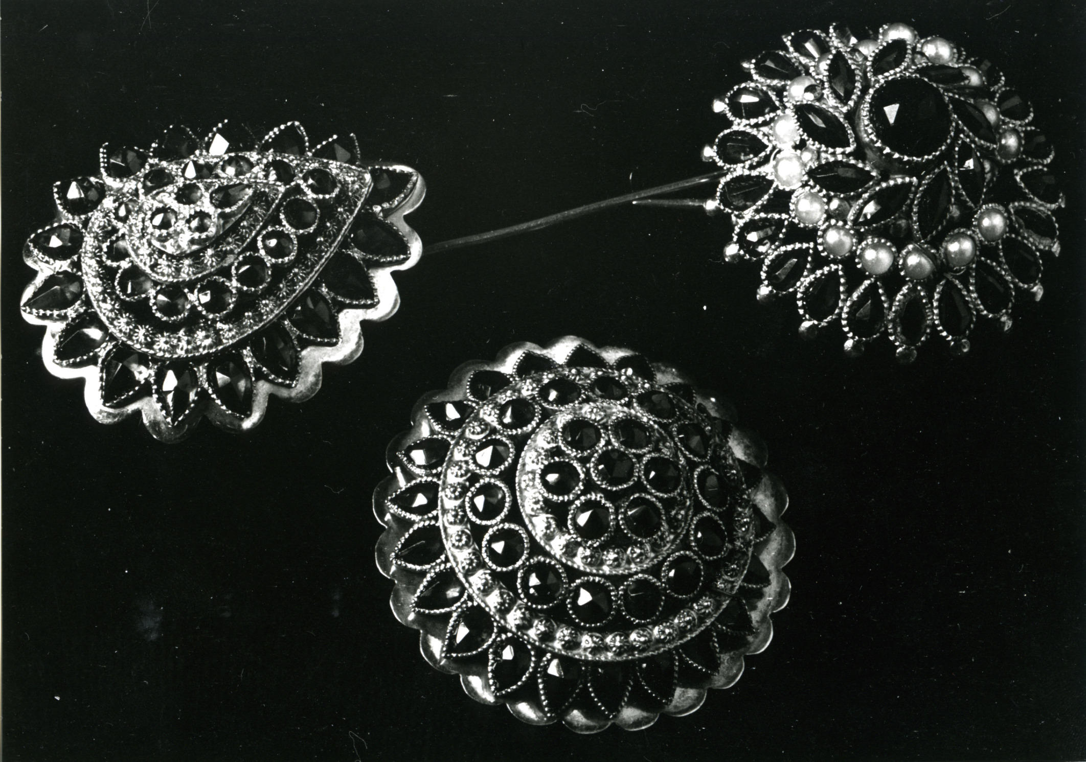 Broche en spelden, Noord-Beveland, 1956 (zwart-wit f...