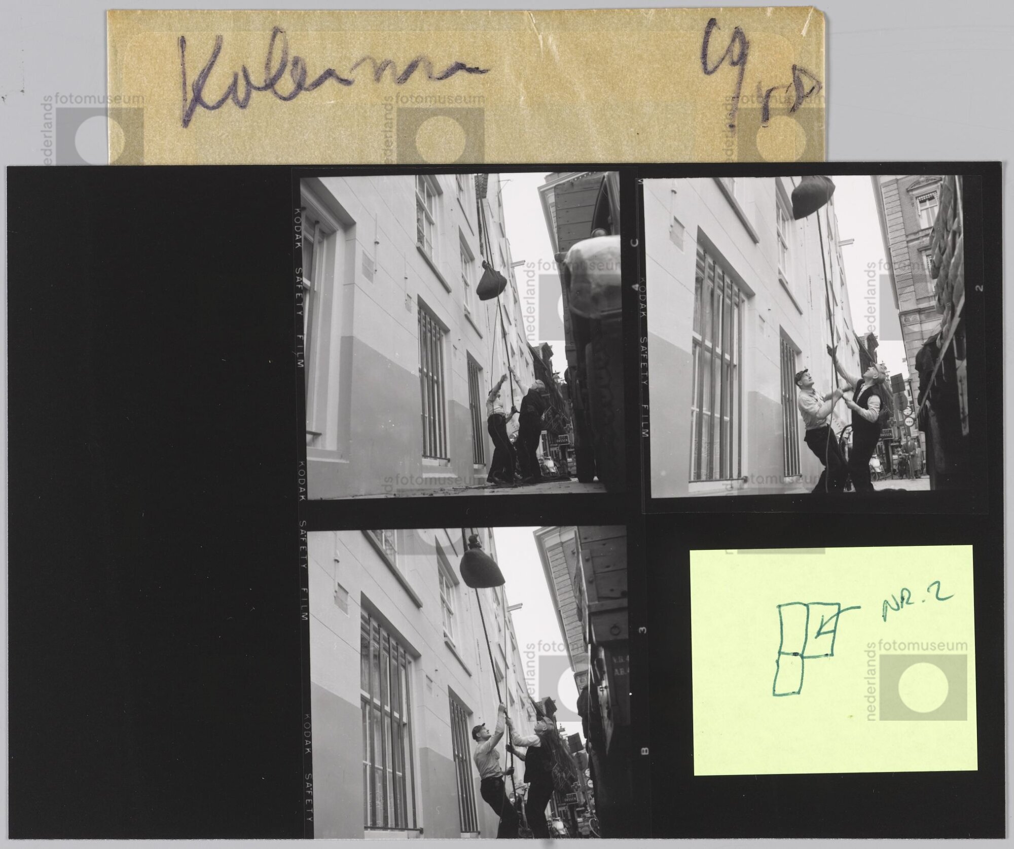 Amsterdam. Kolensjouwers hijsen zak kolen