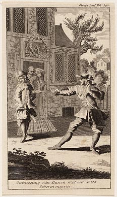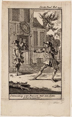 Ontmoeting van Buscon met een sotte schermmeester