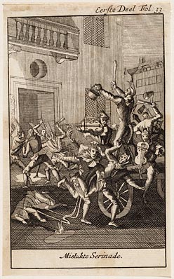 Den griffier door vier gemaakte duyvels mishandelt