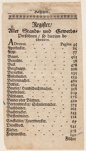Tekstpagina met register uit "Abbildung der Gemein-N...
