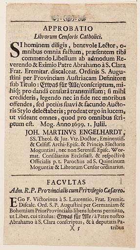 Tekstpagina uit "Etwas für alle", approbatio