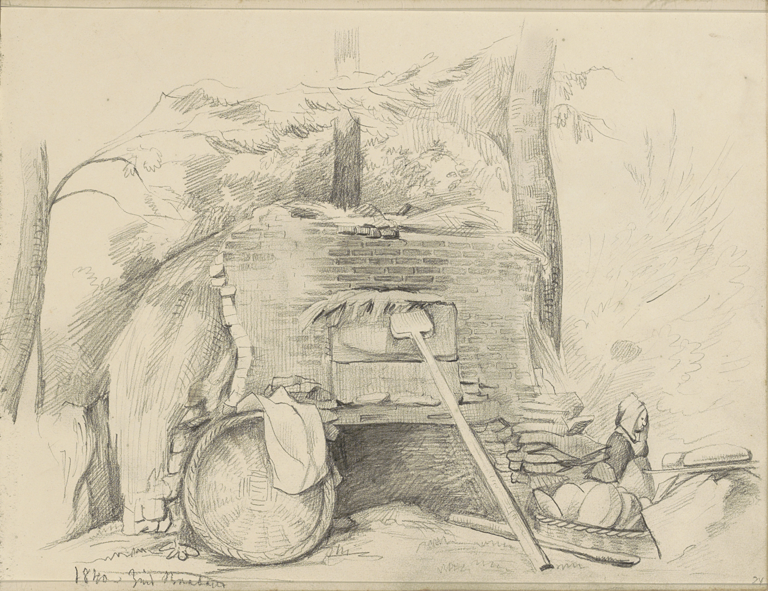 Vrouw met kap bij een broodoven