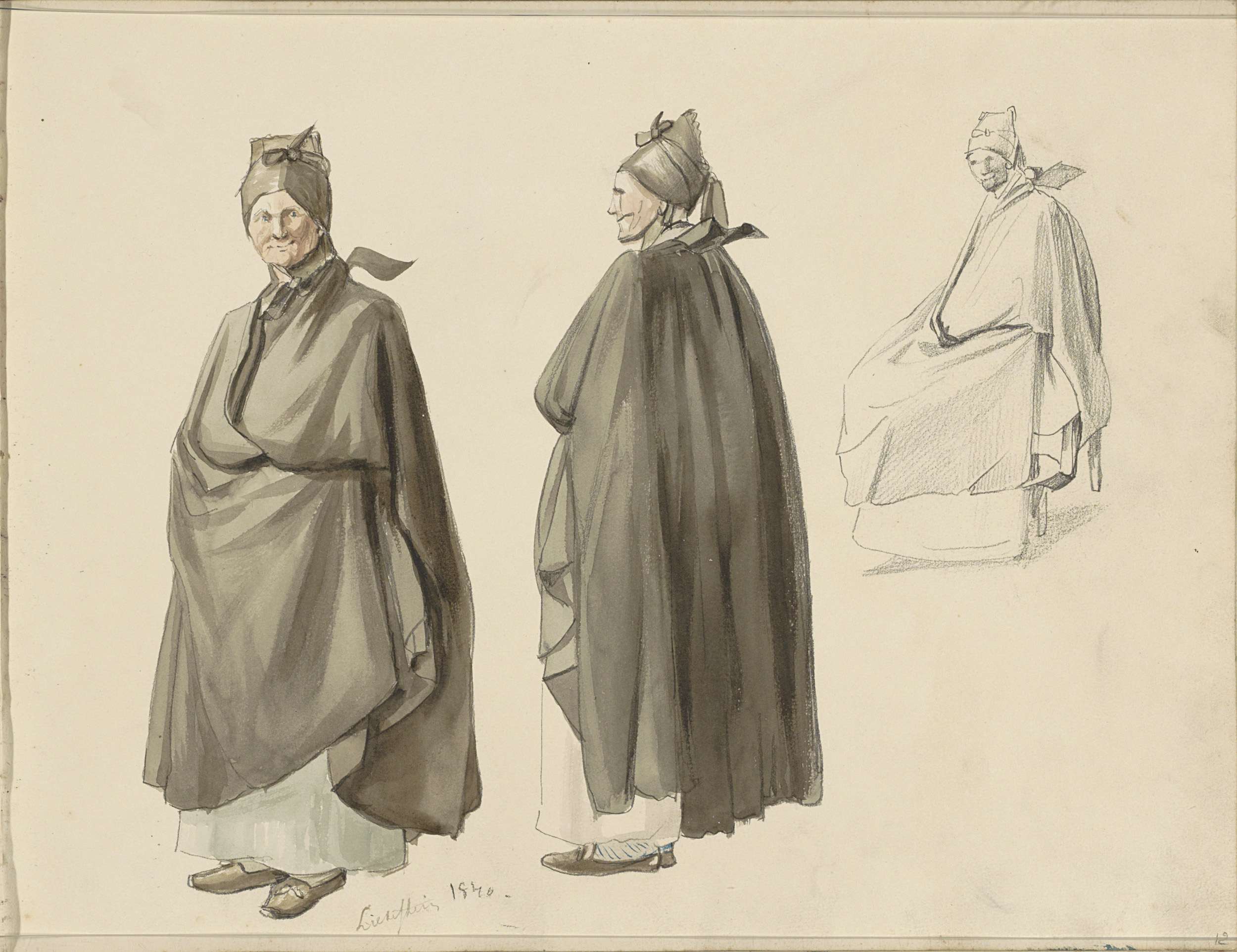 Vrouw in een lange mantel en kap, uit verschillende ...